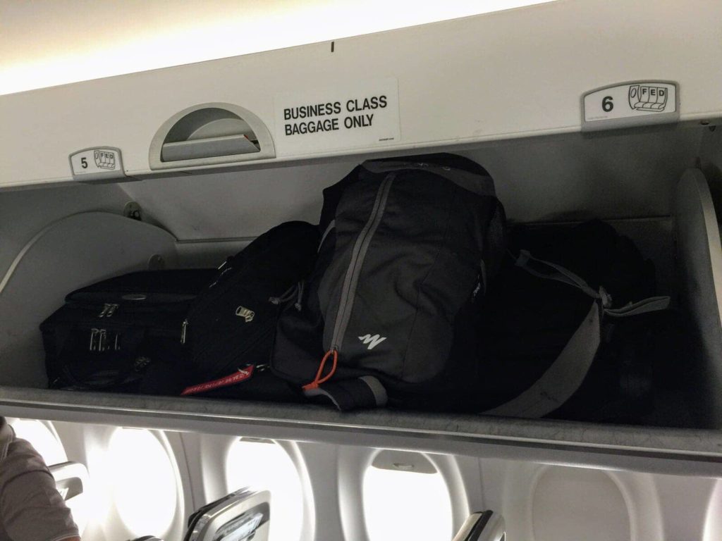 I would say that they are even larger than those found on many long-haul aircraft: the stroller fits here without any problem in any direction, whereas I have to position it in a specific direction every time so that it can fit in the trunk of other aircraft. I was also able to add 2 backpacks and a carry-on bag on the side! Bravo Bombardier for thinking about the comfort of the passengers!