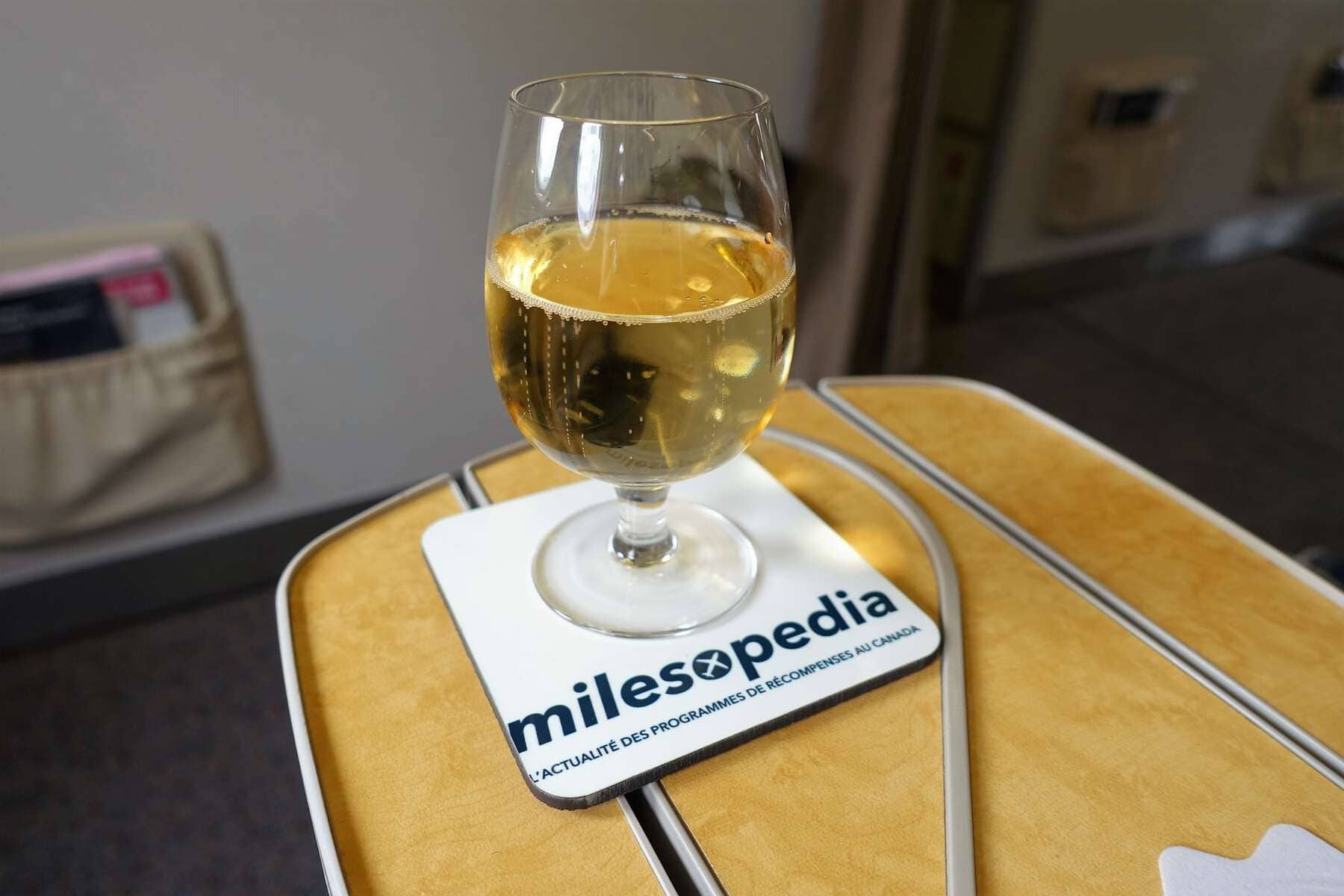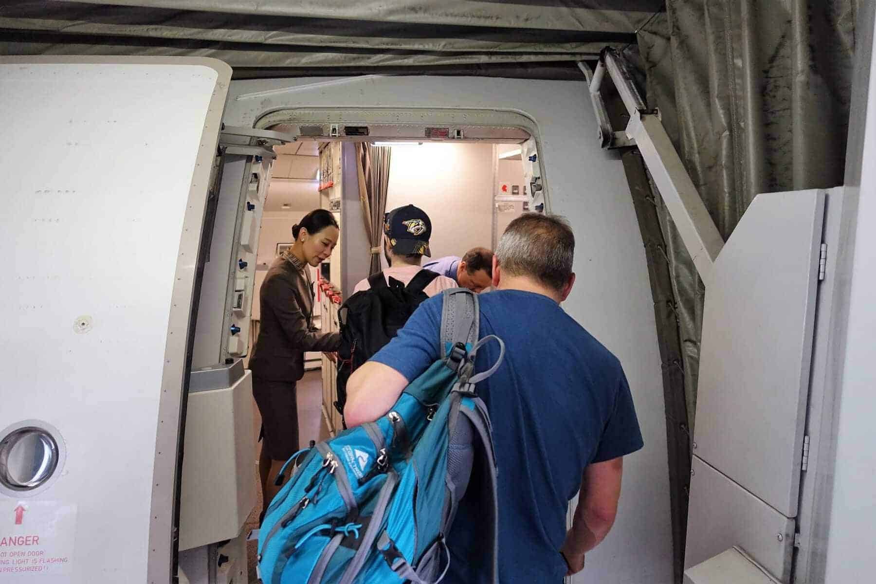 During the boarding process, the Asiana Airlines crew offers us champagne and soft drinks. The now classic photo: