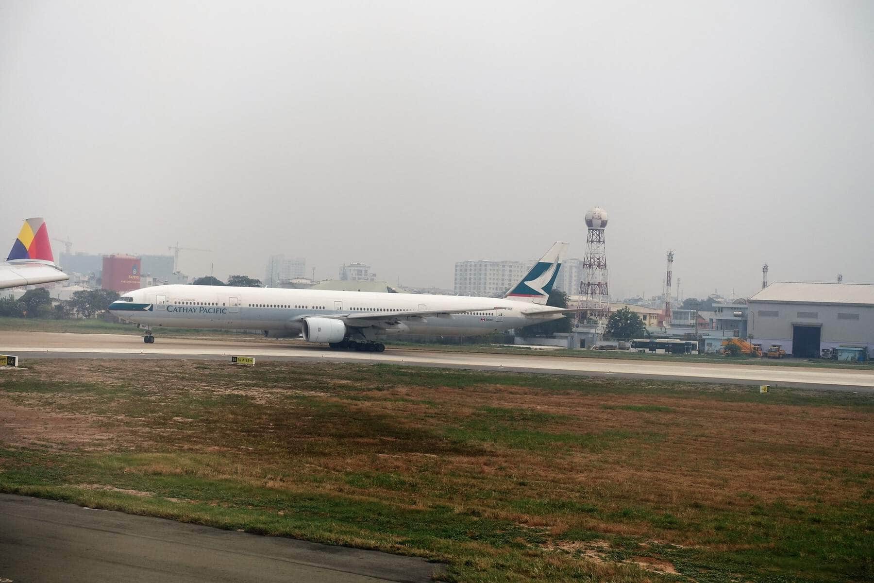 Behind us, a Cathay Pacific aircraft heading to Hong Kong.