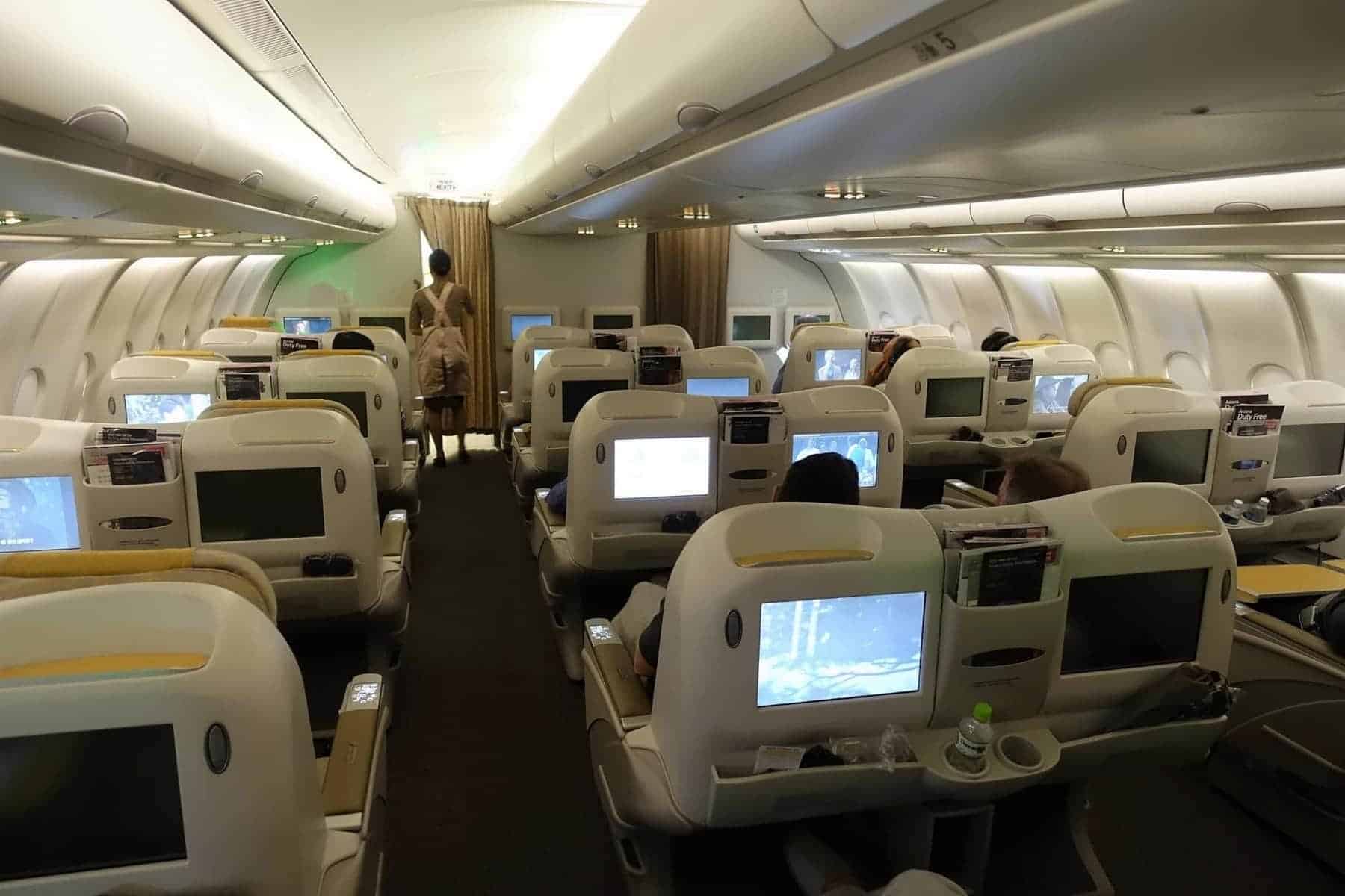 The business cabin was almost full. Appreciated: the flight attendants will ask to close all the windows to allow people who wish to rest (convenient for us with children).