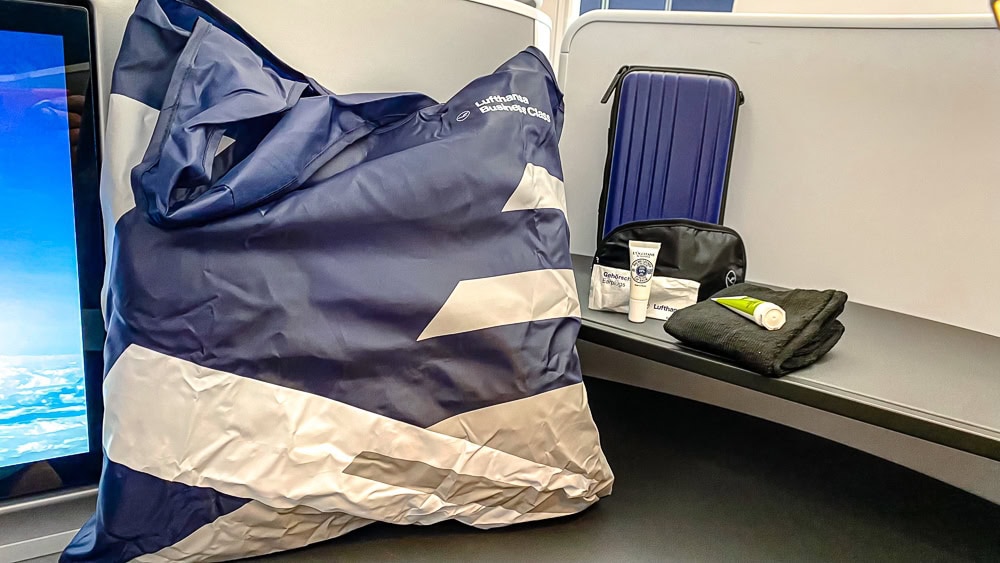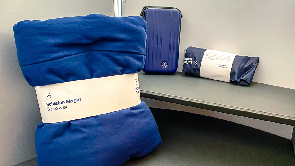 Travel kits are available at every seat in business class. The hard case replicates a mini carry-on suitcase. In fact, it’s a Design by travel experience – Lufthansa aluminium collection product. For those interested, this product is on sale for 49 euros on the official Lusthansa merchandise website.