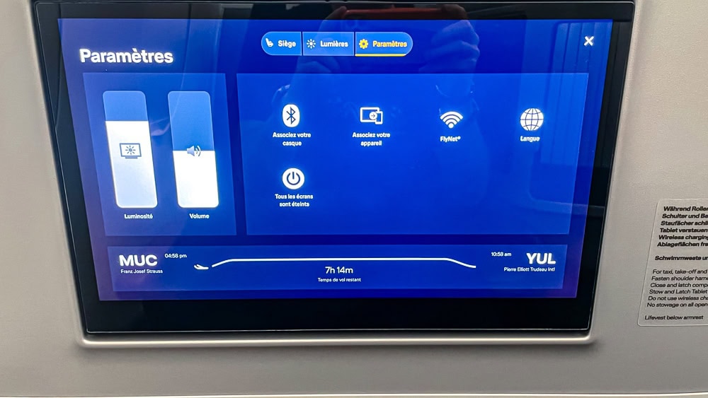 Bluetooth device pairing is also available. This means you can pair your personal wireless headphones on-screen, rather than using those supplied by Lufthansa, a feature my wife particularly liked.