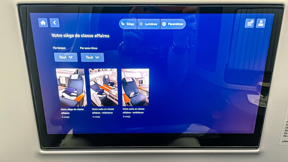 On the side and outside the compartment, there’s a removable electronic tablet that serves as a remote control for all seat options (seat configuration, seat lighting, etc.) as well as screen management (full navigation).