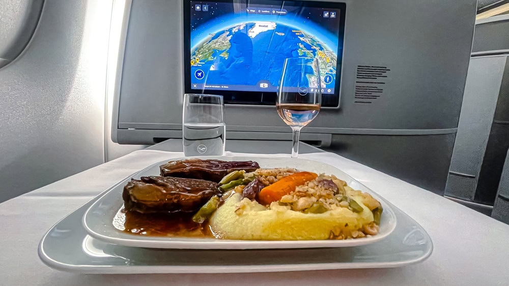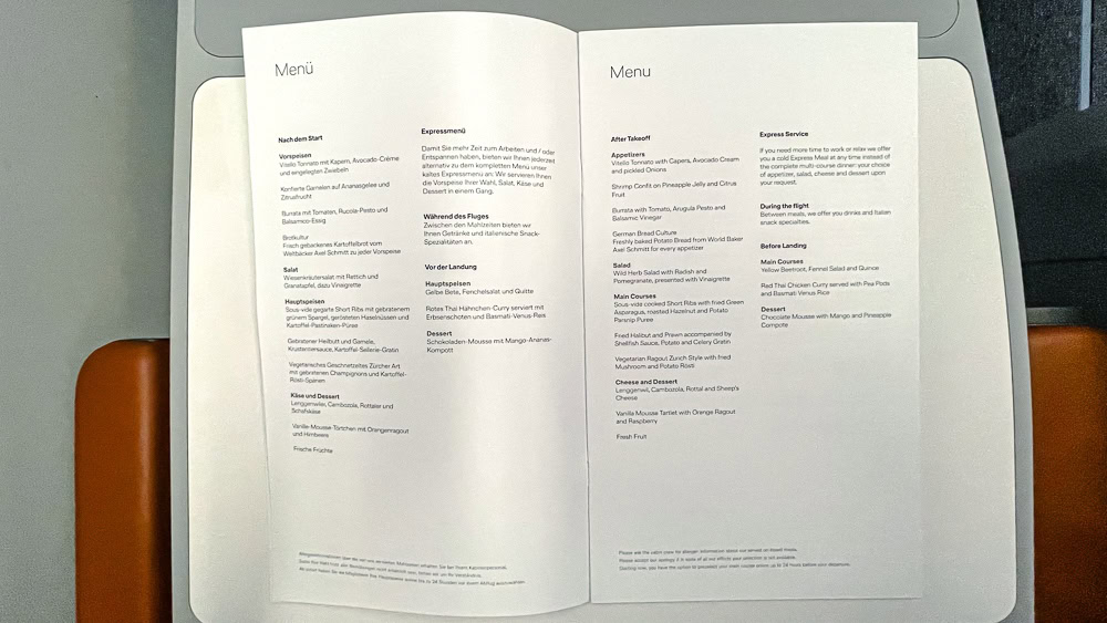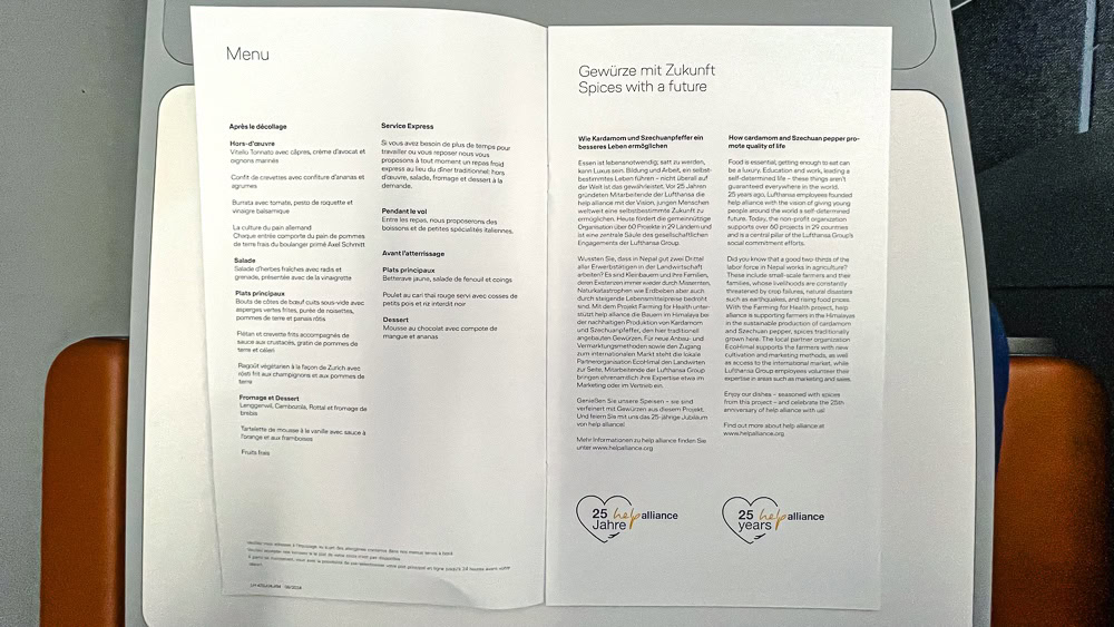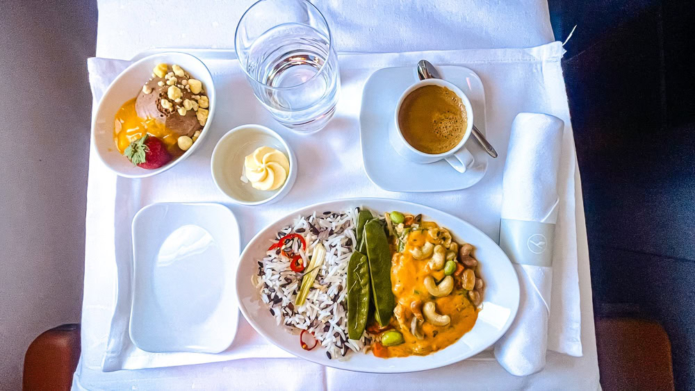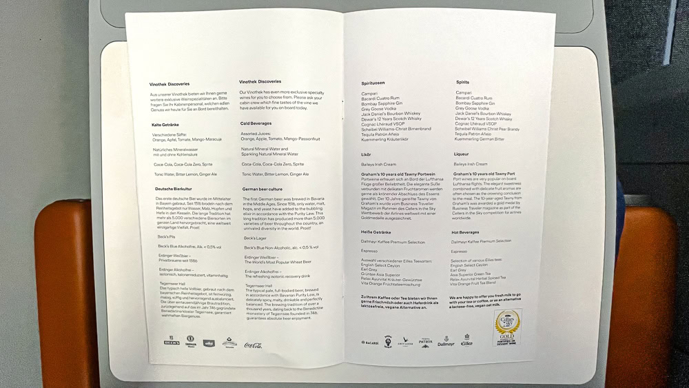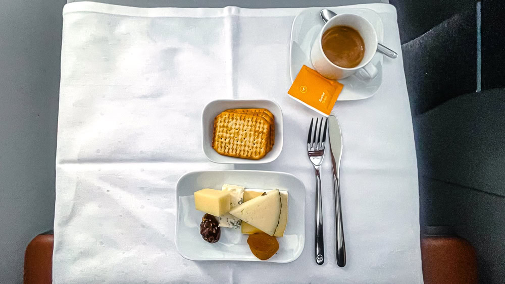 90 minutes before landing, a second service is offered. I like the fact that some business classes offer real espressos on their flights. This is the case with Lufthansa Allegris.