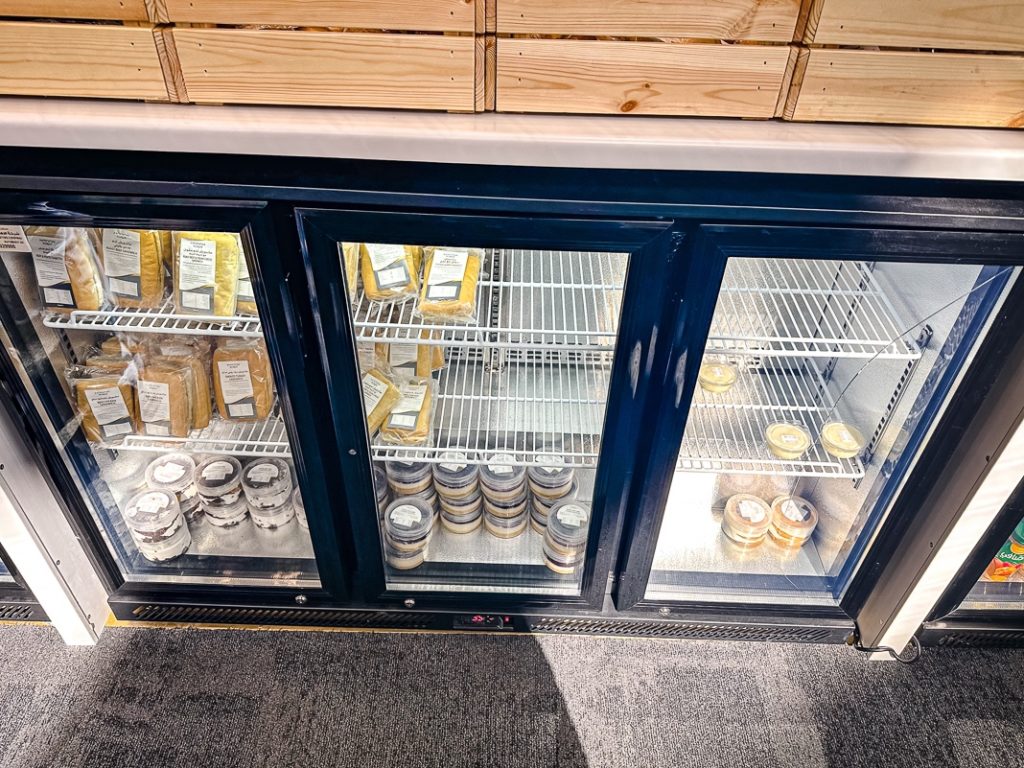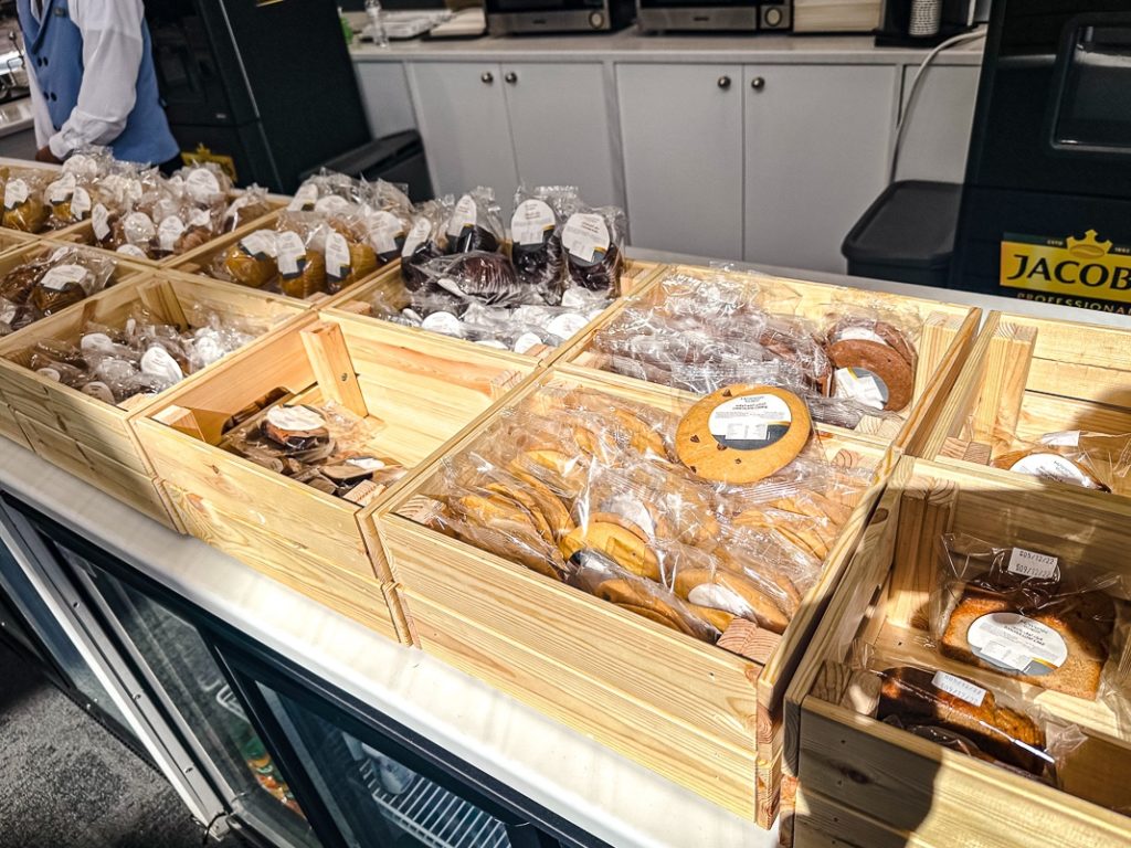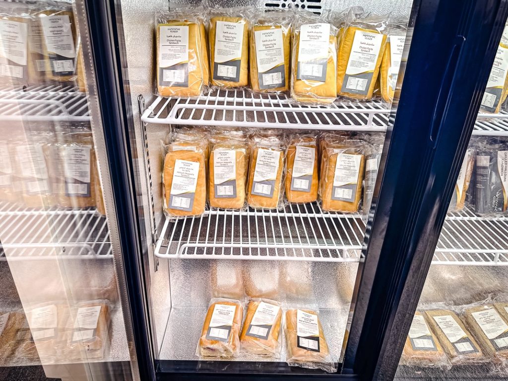 Food is served in individual packages instead of a buffet. Probably leftovers from the COVID-19.