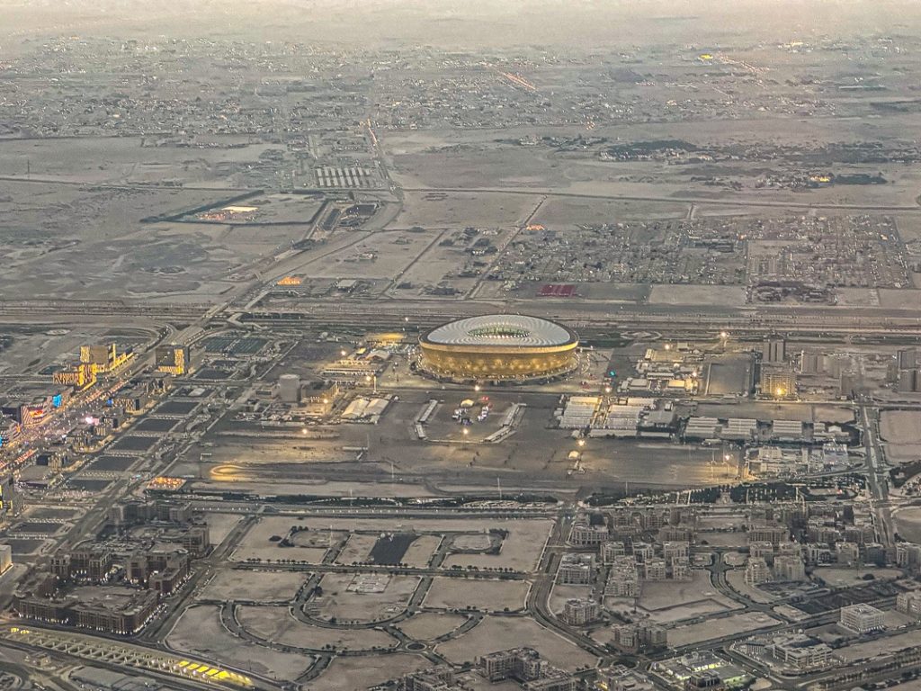 We will pass in front of the famous Lusail Stadium in which I was going to attend the same evening the match of the eighth final between Portugal and Switzerland (won 6 to 1 by the Portuguese) and where the Final of the World Cup was going to take place a few weeks later (unfortunately lost by France against Argentina).