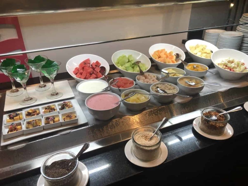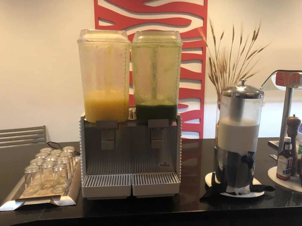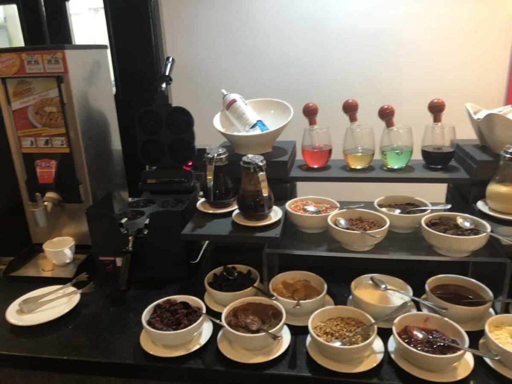 As a Bonvoy member, I used the $5 given to me for opting to “Make a green choice“, i.e. not to have my sheets changed daily. I had the choice between 5 $USD applicable on everything except the alcoholic beverage or 500 Bonvoy points. Thus, my breakfasts cost me approximately 10 CAD$. For Bonvoy members with Platinum status and above, breakfast is free.