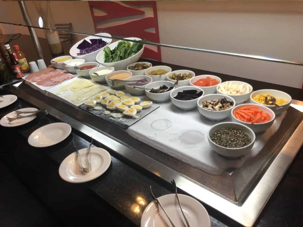 The food at the breakfast buffet: