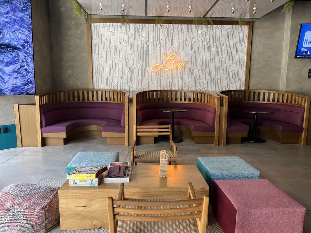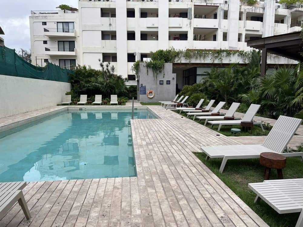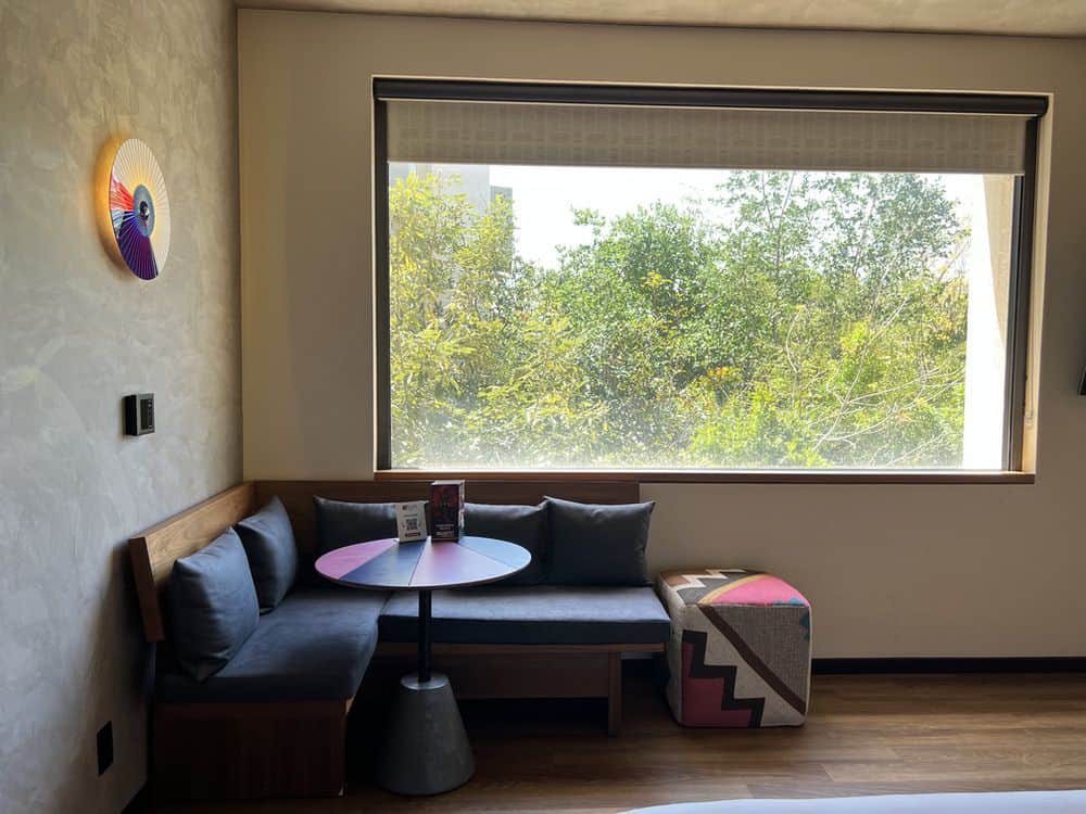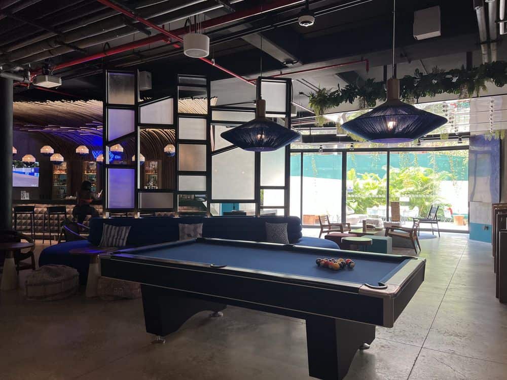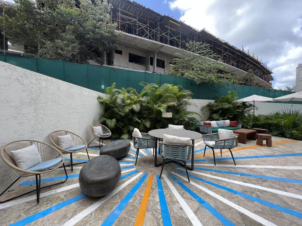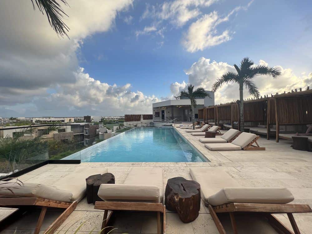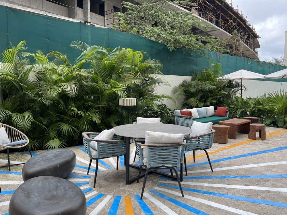 Aloft Tulum has two outdoor pools; one located on the first floor while the other is on the roof. Here is the one on the first floor and its surroundings: