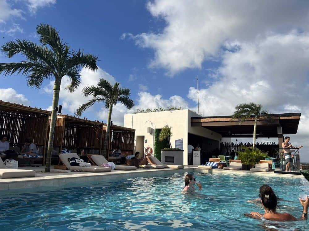 The Aloft Tulum Hotel has two restaurants and two bars. On the first floor is the WXYZ restaurant-bar, where breakfast is served, and on the rooftop near the pool is the Ático Rooftop Bar & Lounge. We loved being able to enjoy the pool while ordering cocktails and food.