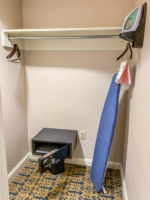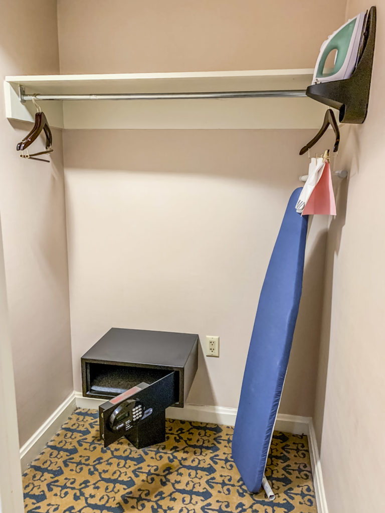 Then there was a very large wardrobe with a safety deposit box and an ironing board. On the other side of the room, there was a door for those who wish to have connecting rooms which can be convenient when traveling with children or in a group!