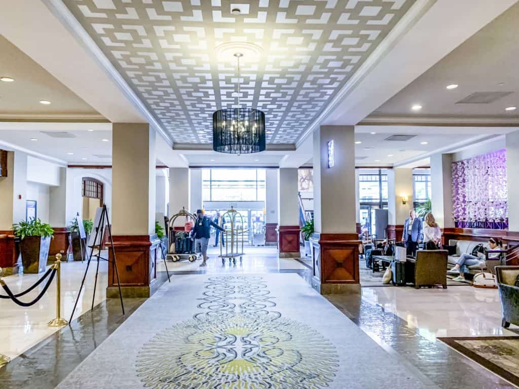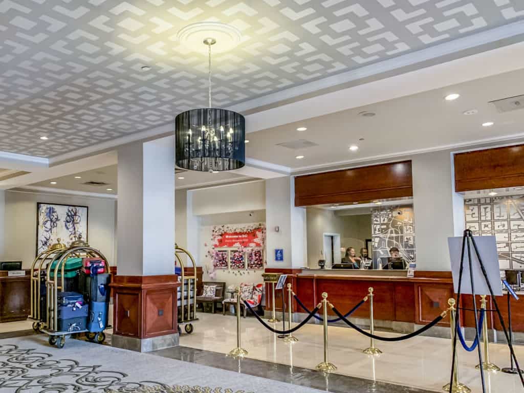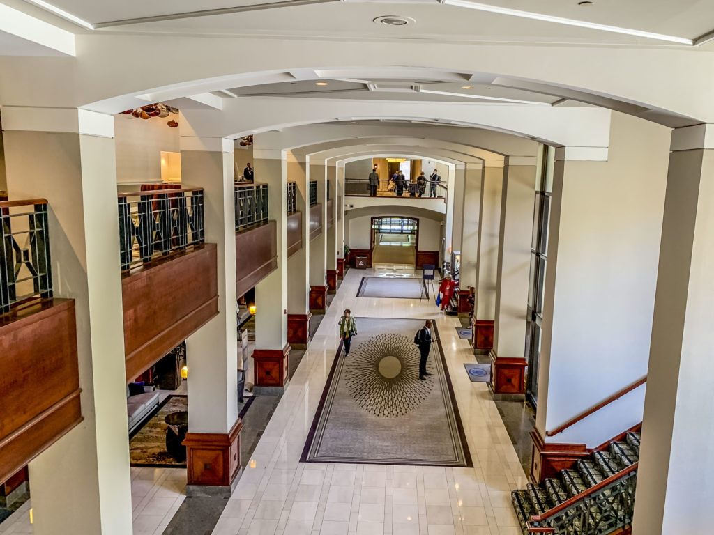The reception floor and mezzanine of the Capital Hilton DC gave a sense of grandeur with the high ceiling and open area.