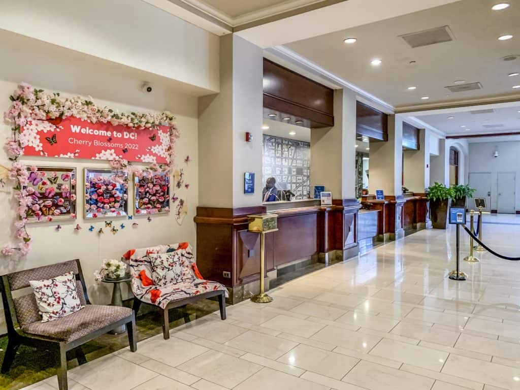 I arrived around noon and liked the ambiance of the lobby. It was the end of the cherry blossom season and the spring decor was still set up at the bar lounge, which is the first thing you notice when you open the doors to the Capital Hilton DC.