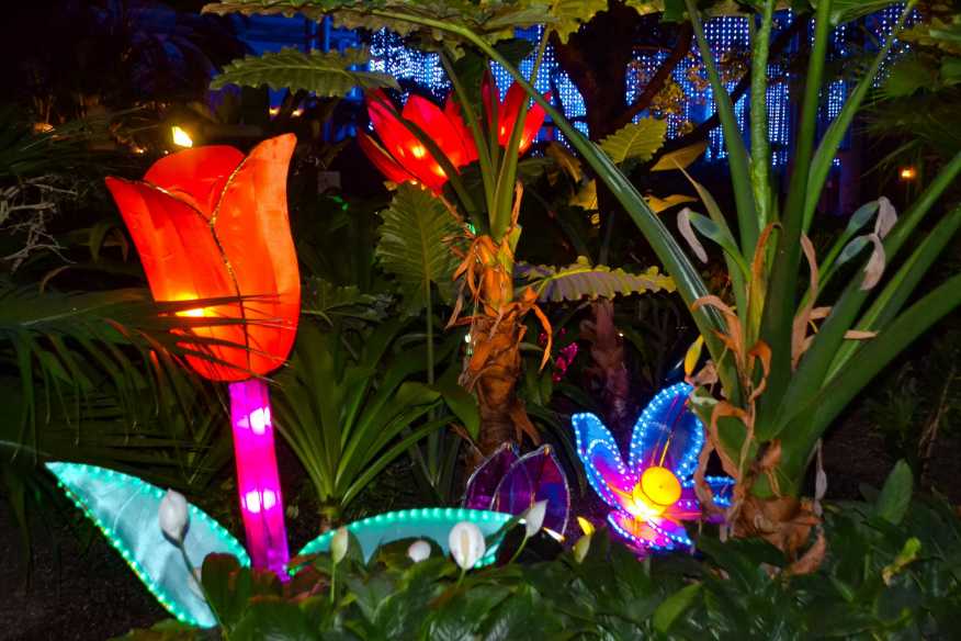 The waterfalls and lush gardens (50,000 tropical plants), the gigantic decorations, the evening lights, the costumed characters who distribute free gifts during the holiday season are all accessible to you free of charge.