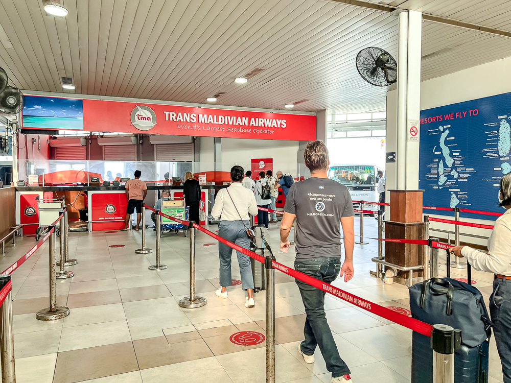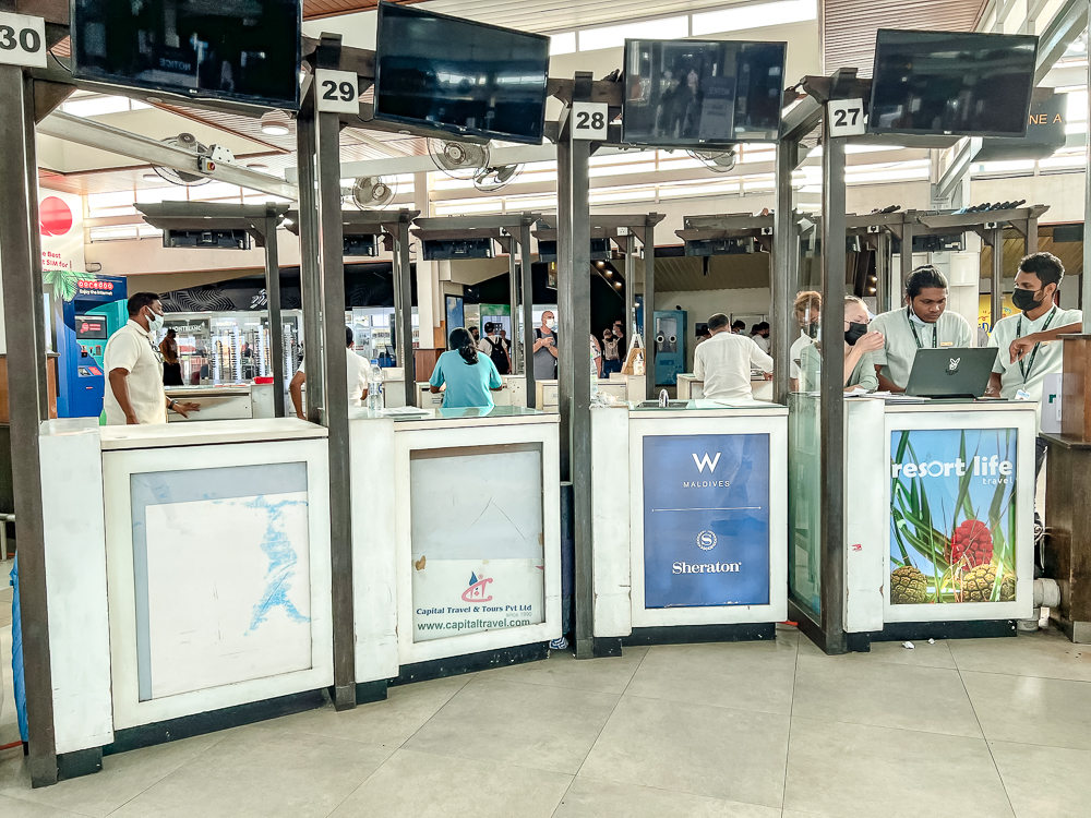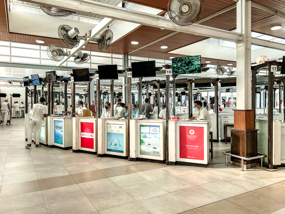 Each hotel has a small stand to organize transfers. We will find the person in charge for the JW Marriott Maldives Resort & Spa who will check us in with our passports and direct us to our van driver with other guests. Once complete, the next stop is the TMA terminals.