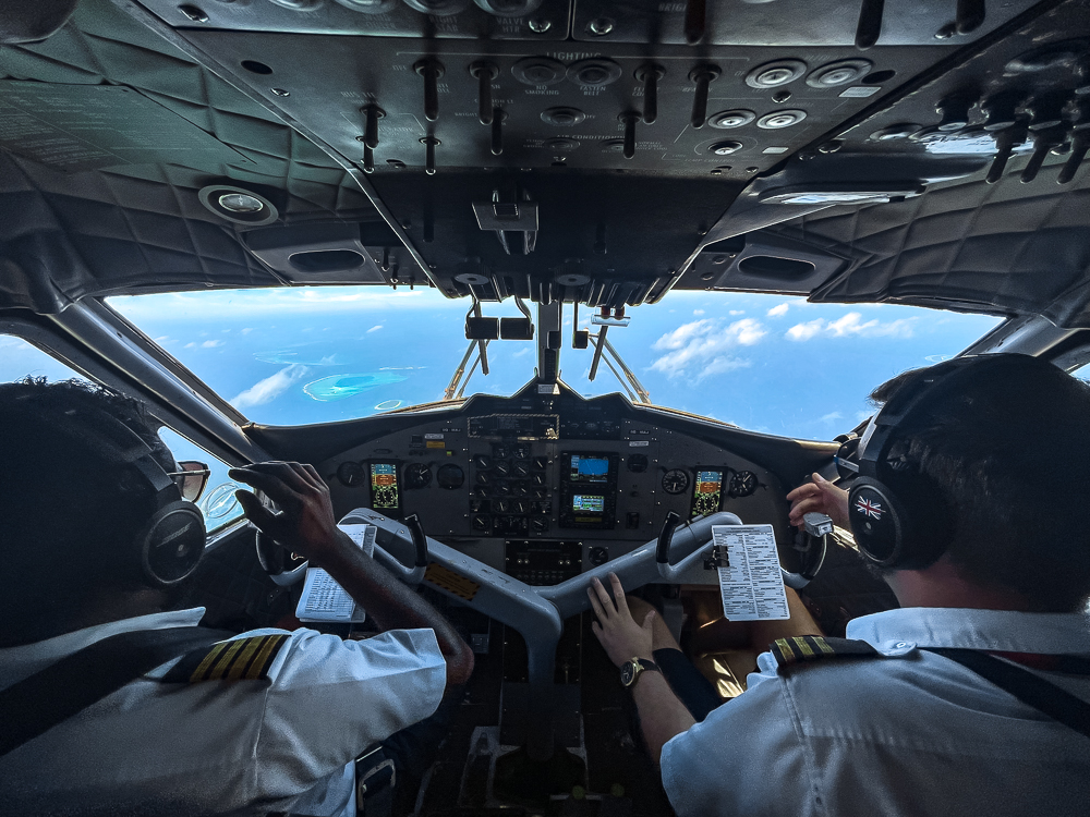 The propellers’ turbines started, we finally get a good view of the blue waters of the atolls, allowing us to forget the deafening noise of the propellers. I highly recommend putting in earplugs as I found it hard to bear for myself. The crew offers them as needed.