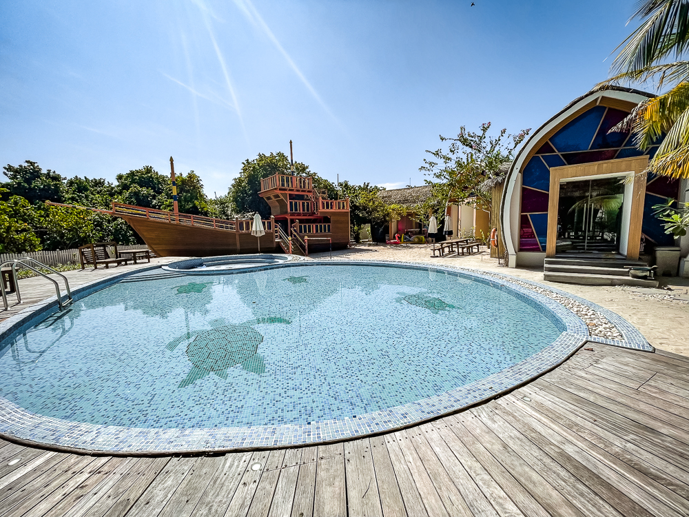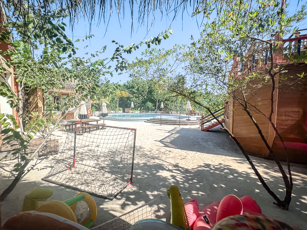 The exteriors are also superb between the pool and the huge pirate ship of more than 13 meters long. The person in charge even told us that they organized popcorn movie sessions some nights with the children on the boat.