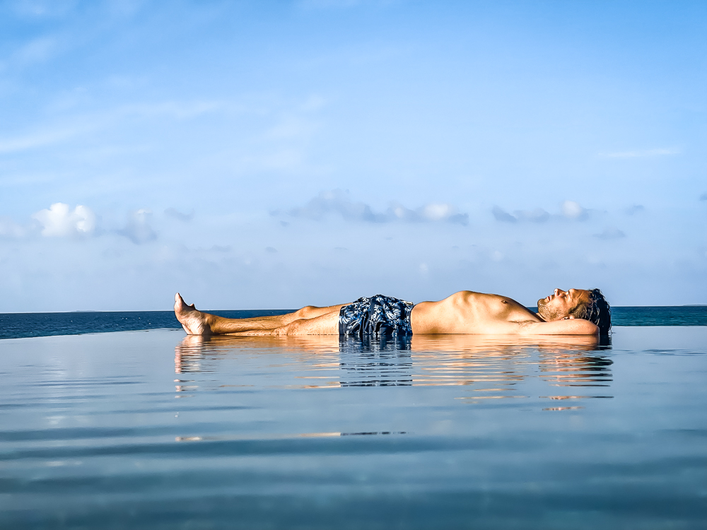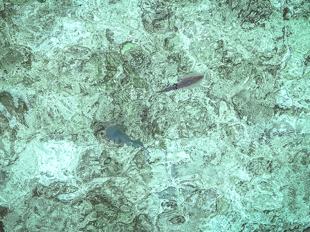 After three nights at the beach villa, we had managed to negotiate a smaller Overwater villa for our last two nights. But we especially wanted to see the seabed on this side by snorkeling.