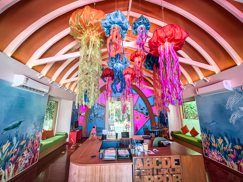 The team is very attentive, they do their best to make sure that you and your children have a great time on the island and keep exceptional memories of your trip. The children are made aware of nature and recycling. The decorations on the walls and the ceiling testify to this, all under the theme of the underwater world.