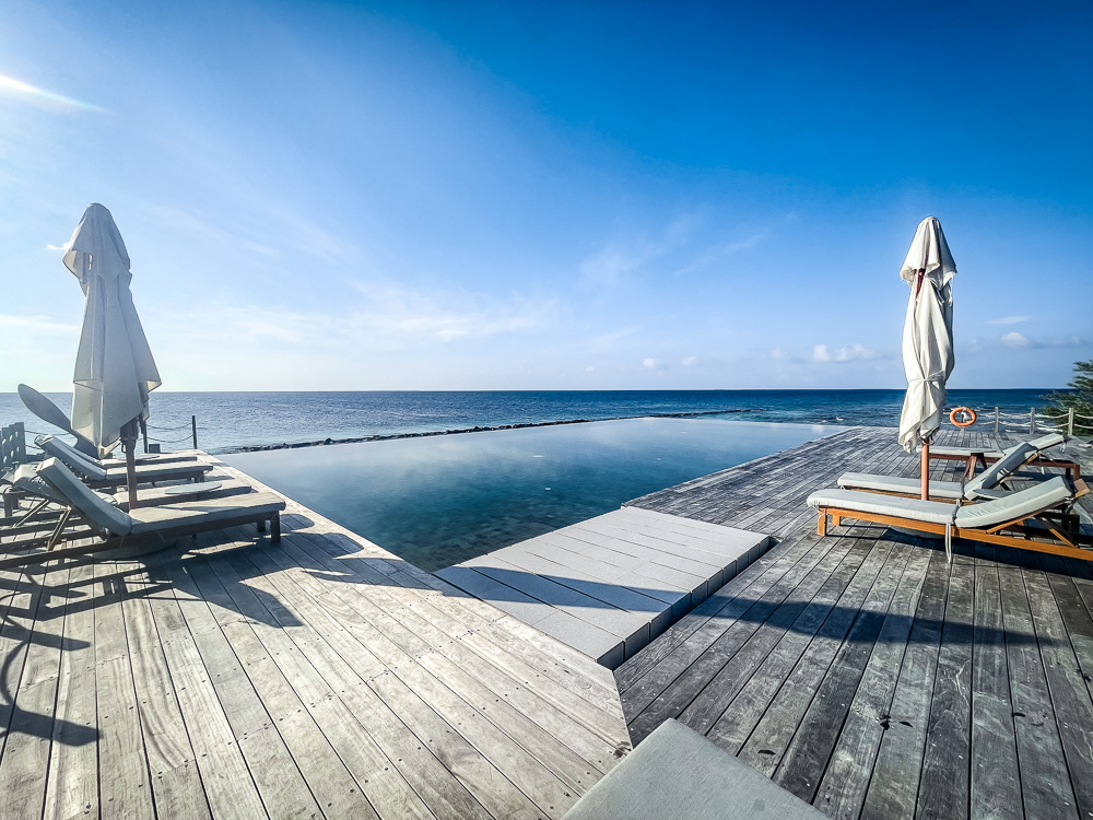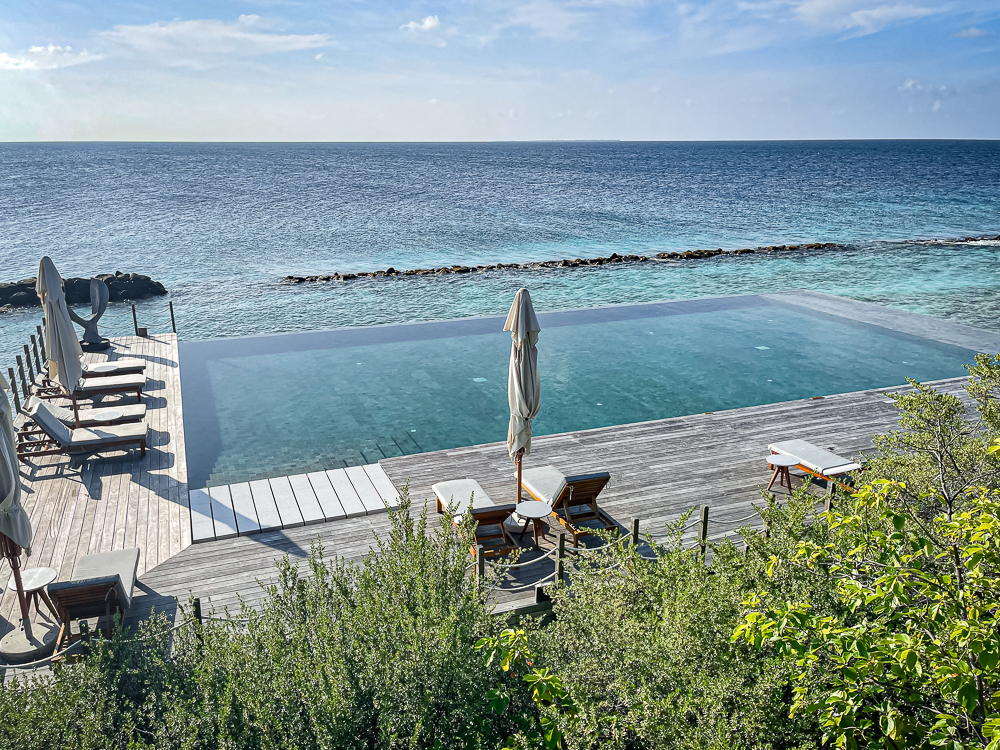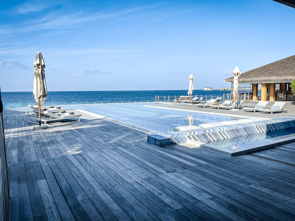 The staff will then advise us that with the strong winds of that day, it is impossible to take off again. We will have to wait for a boat to be sent to us by the JW Marriott Maldives Resort & Spa. During this time, we will have the pleasure of taking a guided tour of the Fairmont Maldives, known for having the longest infinity pool in the Maldives.
