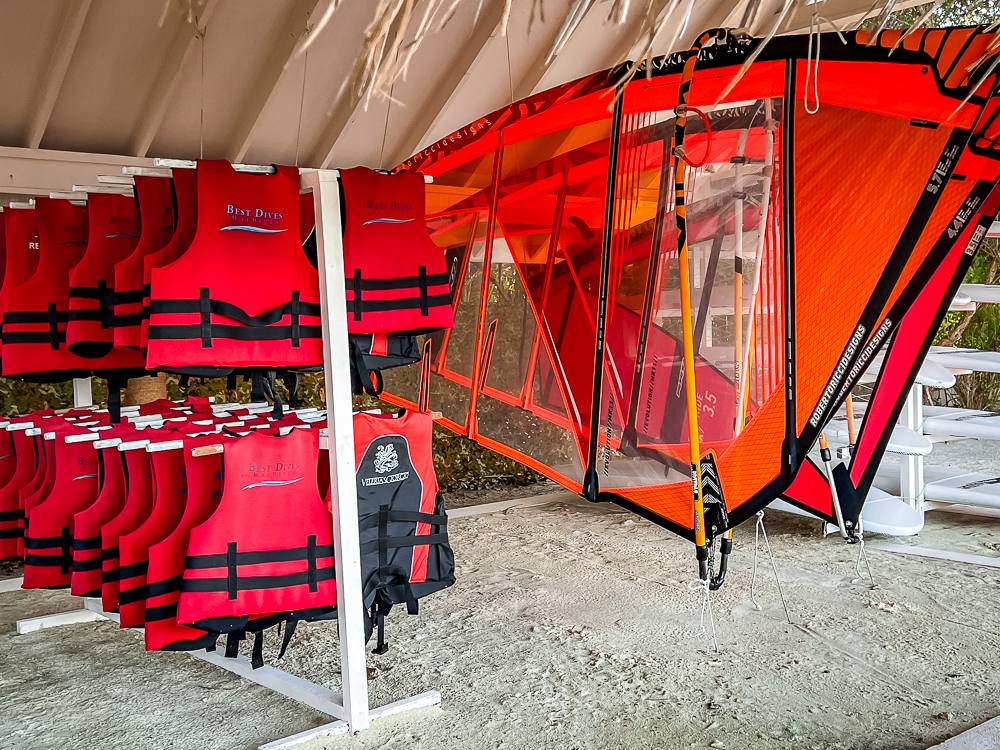 The diving and water sports center offers free equipment (fins and snorkels) if you wish. The person who manages the equipment speaks French and will be able to offer you a beautiful program adapted to your needs, whether it is scuba diving, a tour in a catamaran, a kayak, a paddle or a cruise to meet the dolphins.
