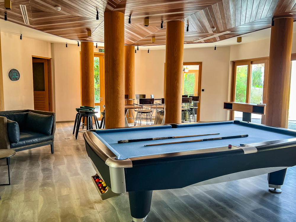 We had the room to ourselves, allowing us to enjoy a game of pool. The exterior was still under construction.