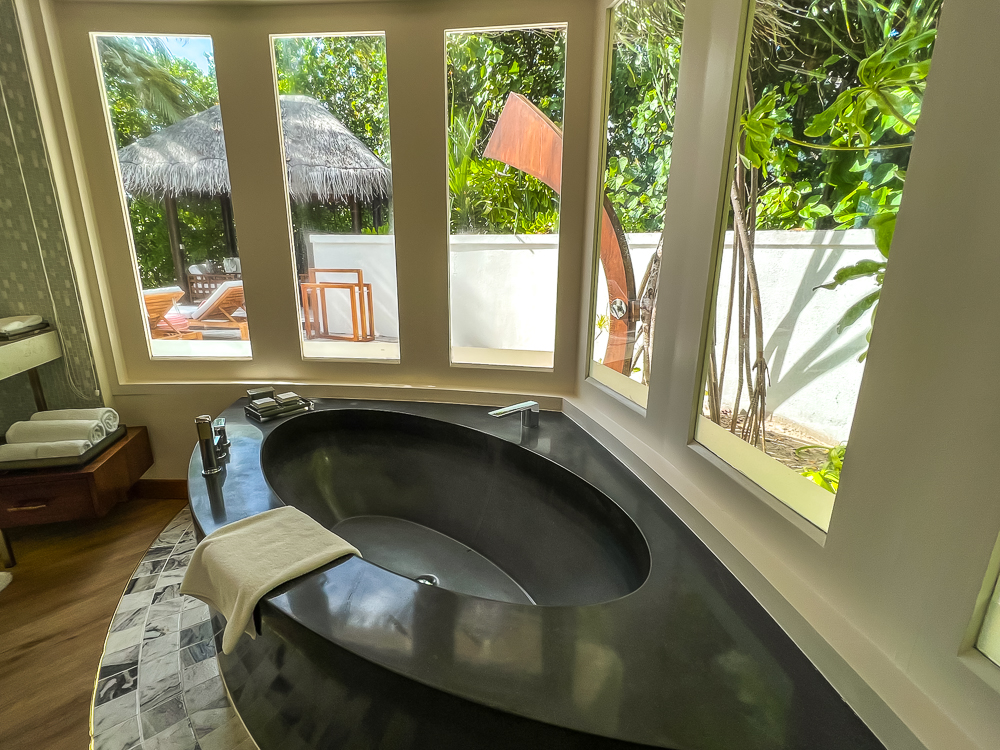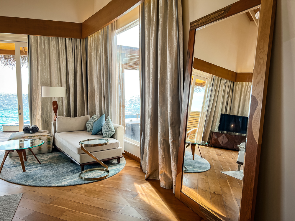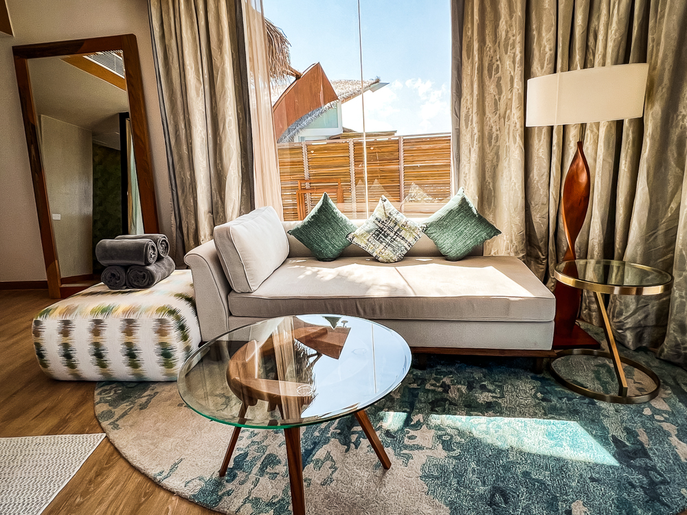 Once at our villa, a beautiful duplex, we will finish the registration. However, considering the weather conditions of the day and the days to come – the sea was still raging – we regretted the choice of the Overwater villa, especially since the trip between the flight and the boat had made me nauseous. Hussain quickly grasped our discomfort.