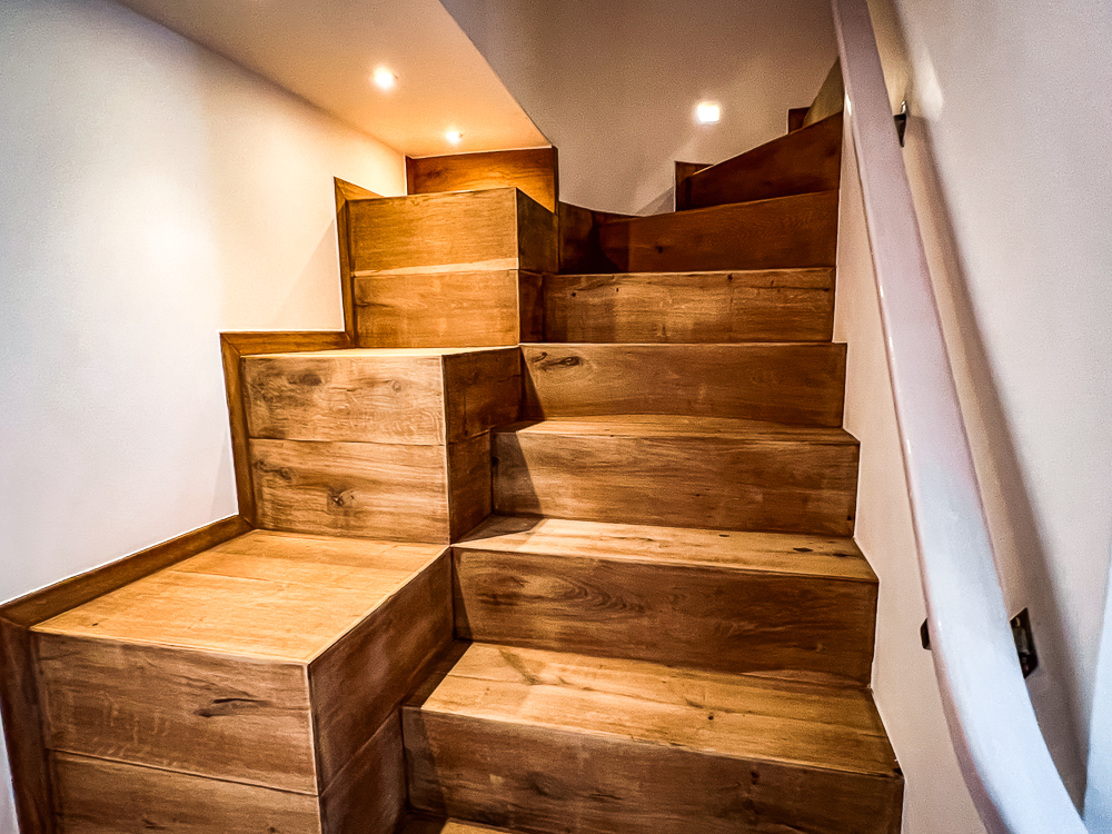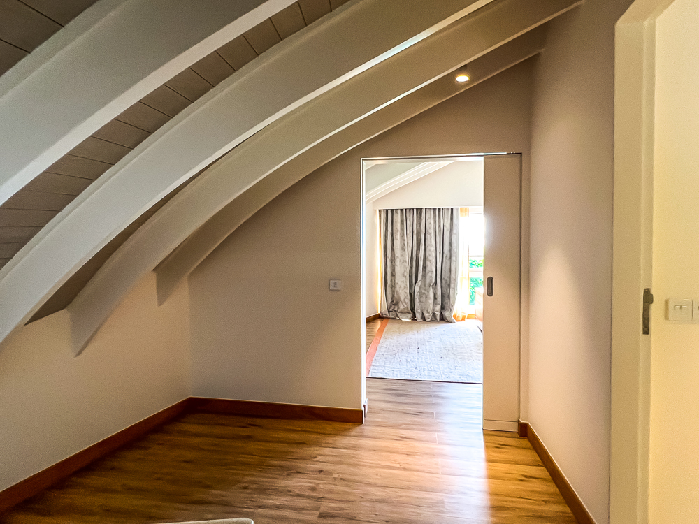 On the floor of the duplexes, we arrive on a small room – yoga room? – which leads either to a bathroom or to a large multimedia room. We would have seen ourselves there with the children to watch a good movie in the evening (or by rainy weather).