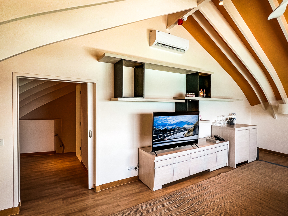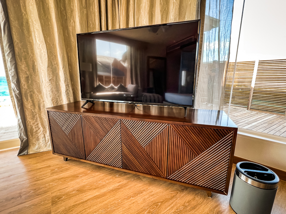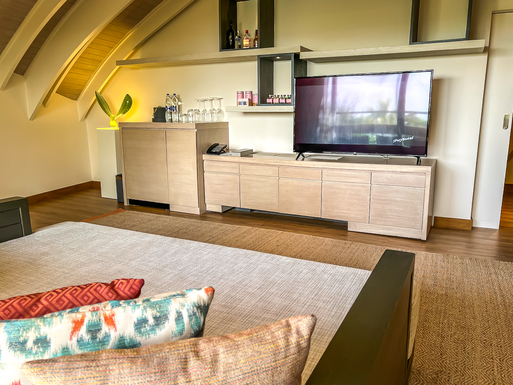 The interior of the duplex villa on the beach was very similar to the overwater’s one.