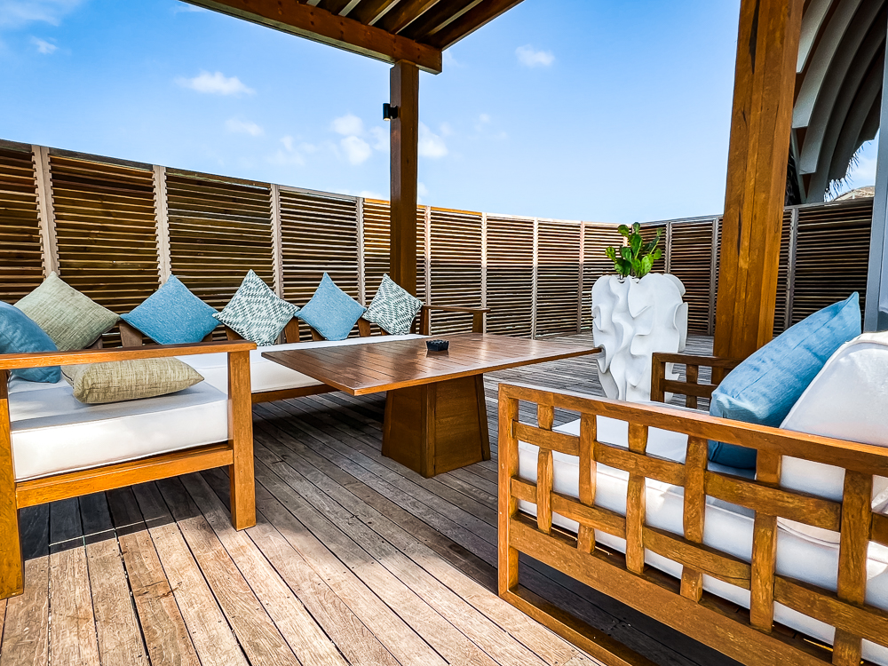 The terrace was certainly less intimate, since people from the next villa could see us on our terrace, but I loved being able to observe from our terrace reef sharks, stingrays and other fish.