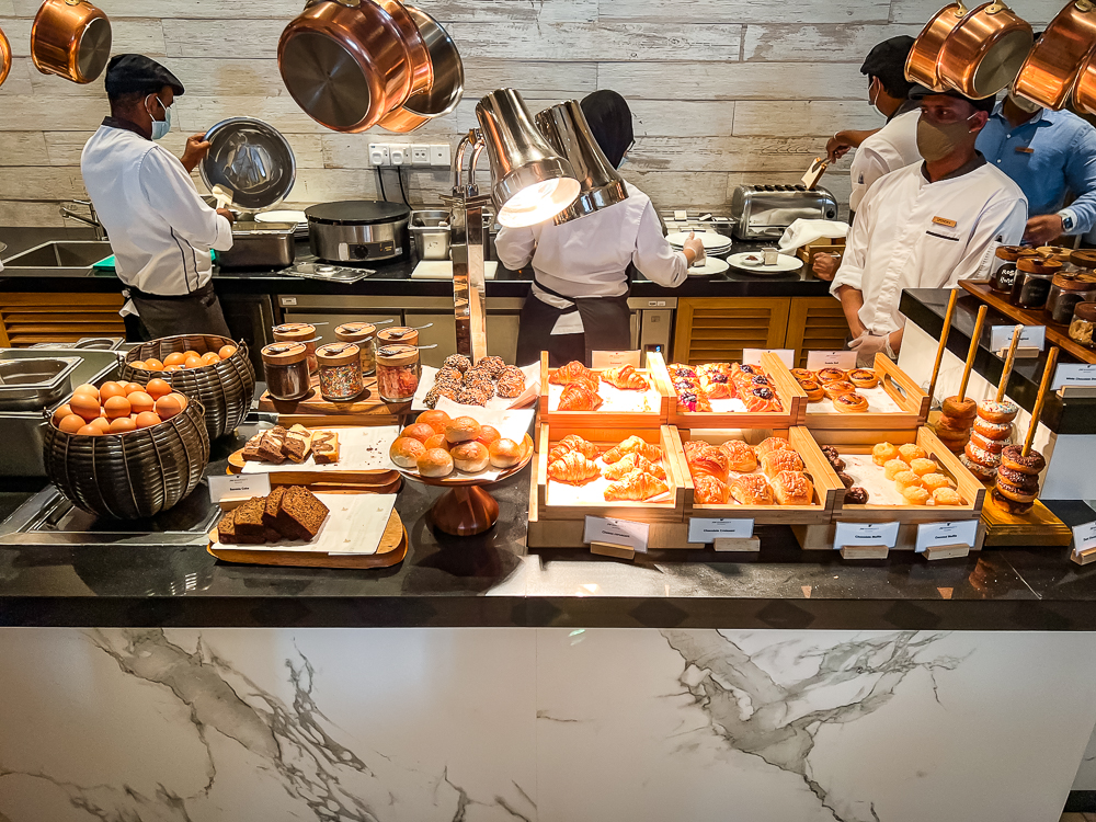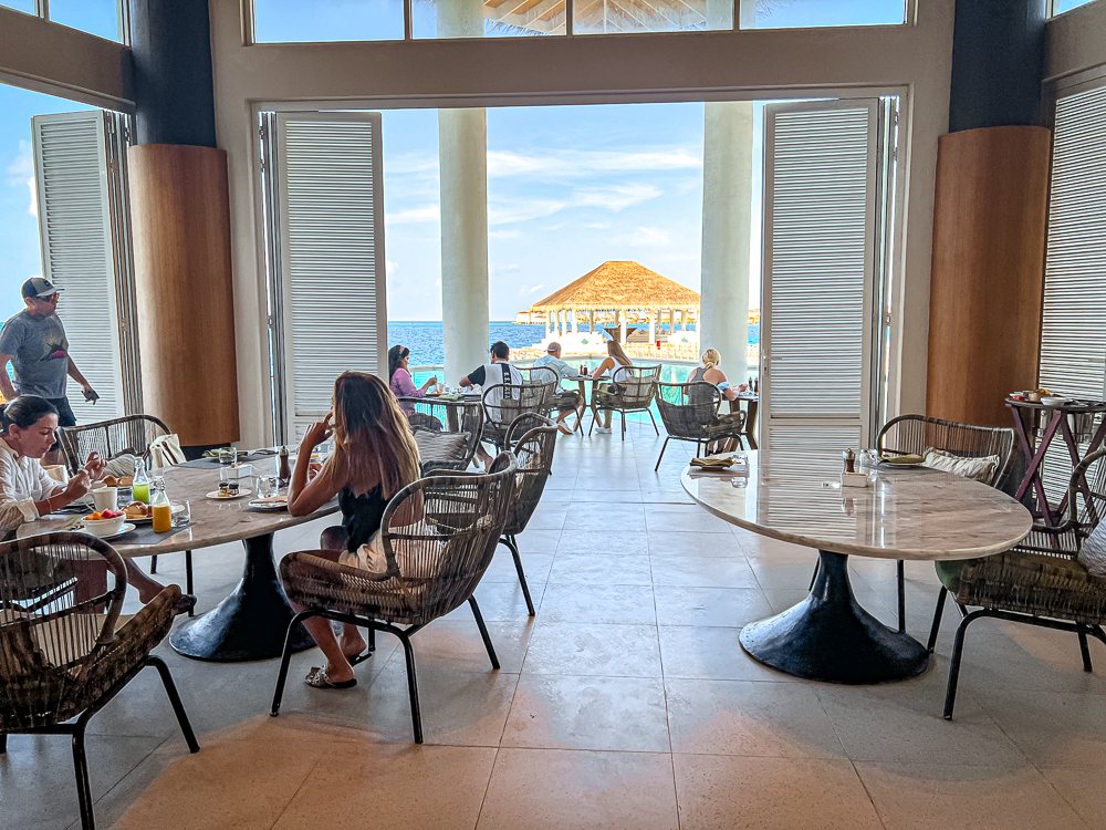 Every morning we went to the pavilion of the Aailaa restaurant to enjoy the buffet breakfast. The indoor room is nice but eating outside with the view of the Overwater villas or the fishes almost at our feet was so nice.