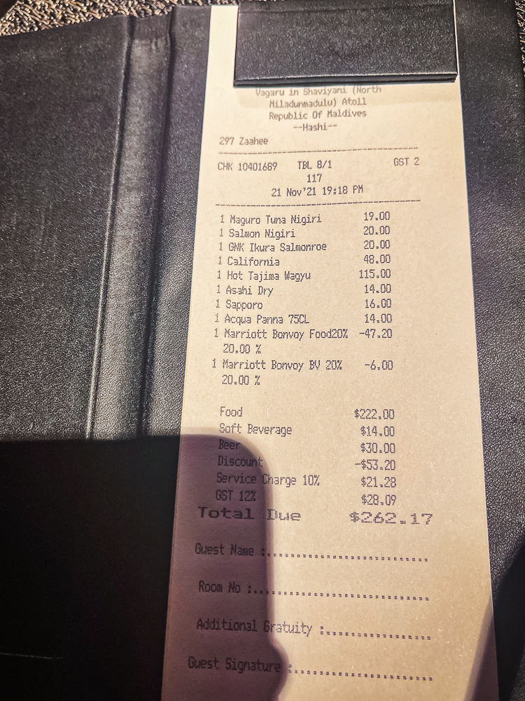 For those who are wondering, we spent about US$ 1,500 over 5 days on restaurants and bars (knowing that we had free breakfast thanks to our Titanium status). Our goal was to enjoy this little paradise, the points had already allowed us to save a very nice sum.