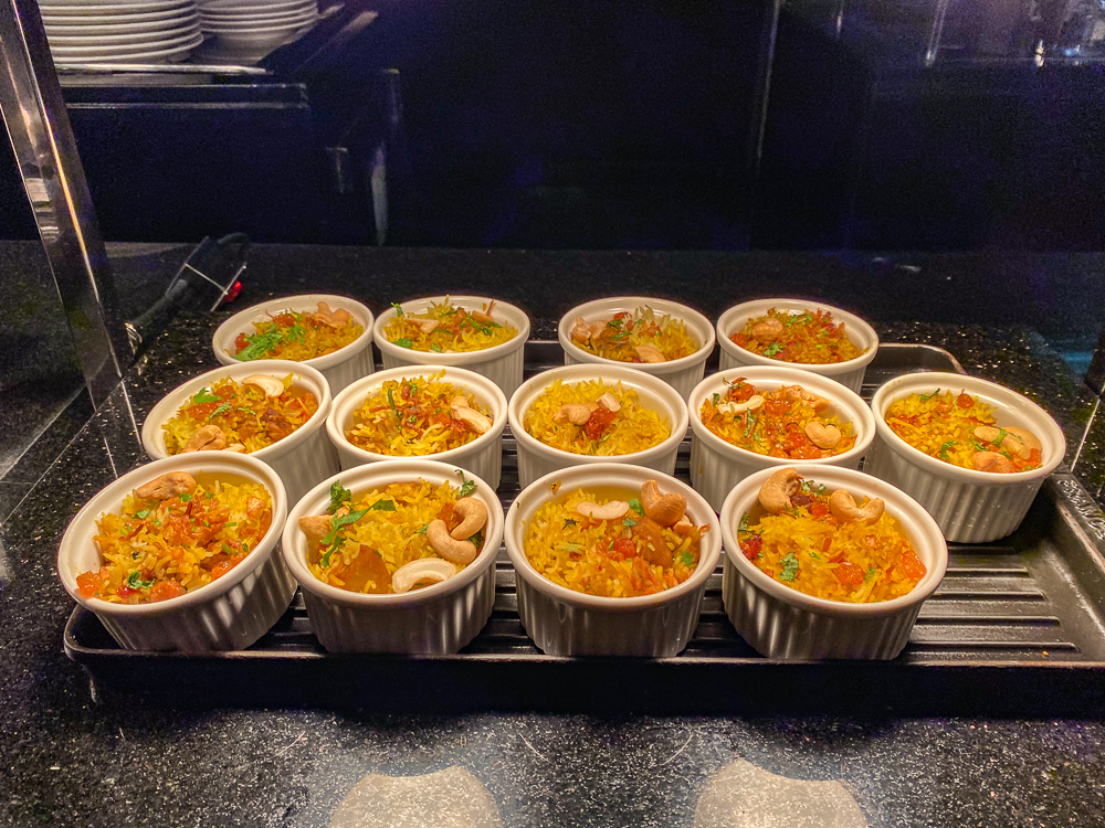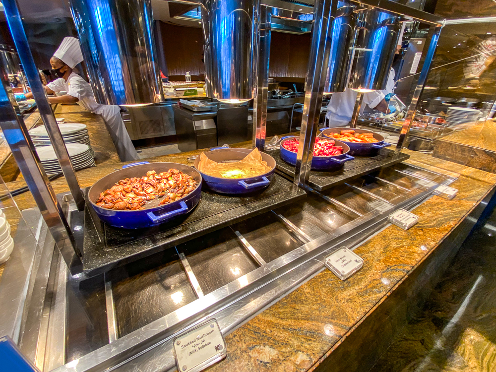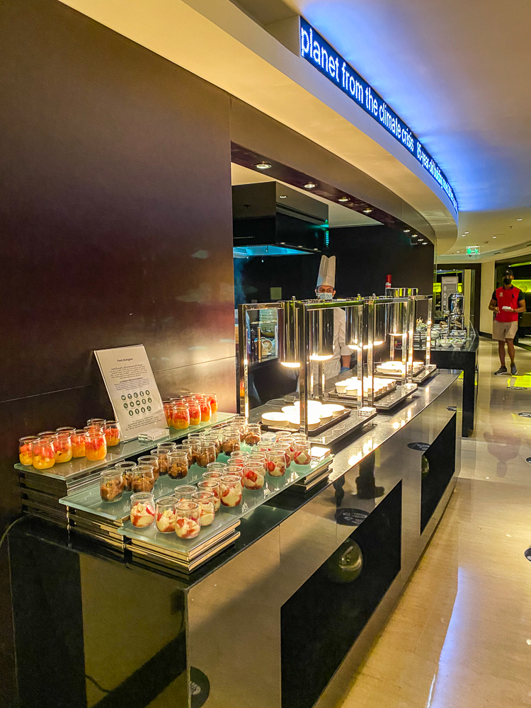 Several buffets are offered featuring world cuisines: Asian, Arabic, European, Indian and other culinary specialties.