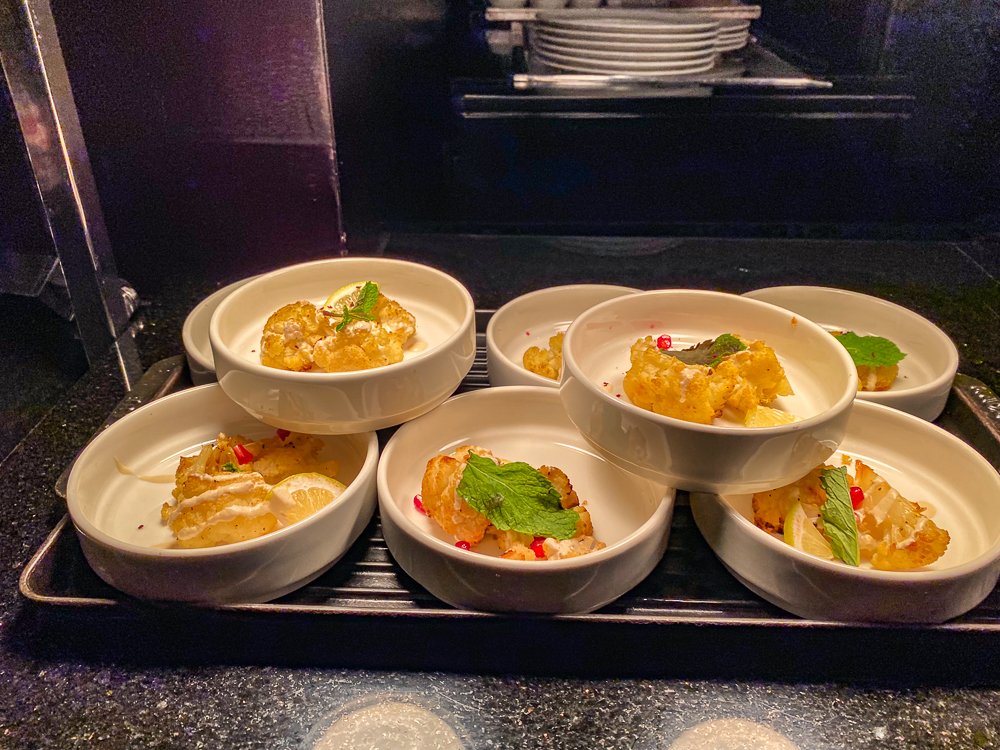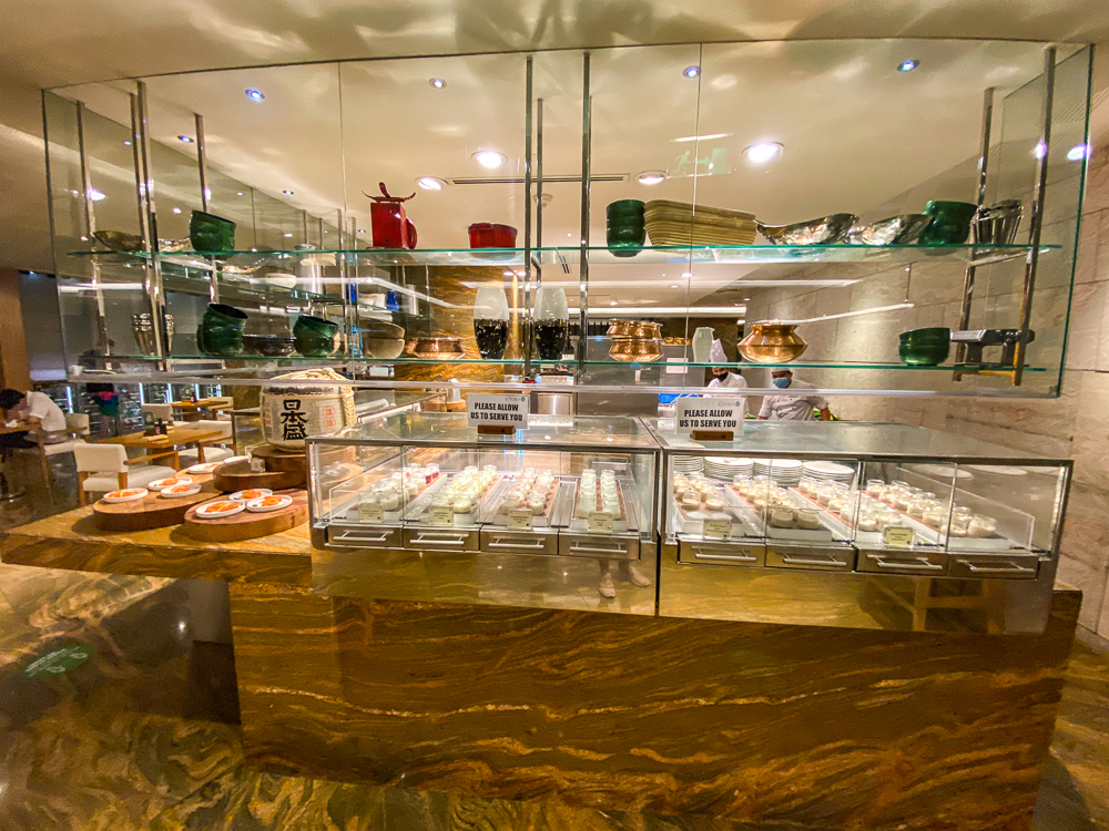 The meal offer is very interesting. Usually, food is served in glasses or small plates or in the case of tea, a plate is brought to your table. Servers will serve you at your table as needed.