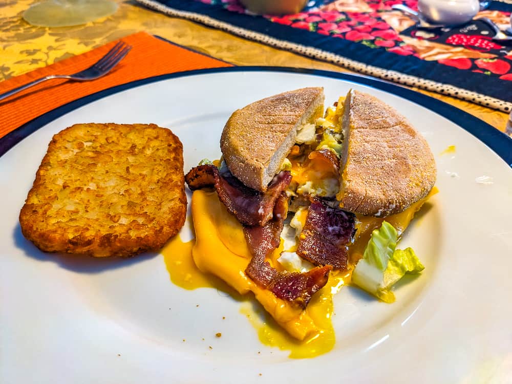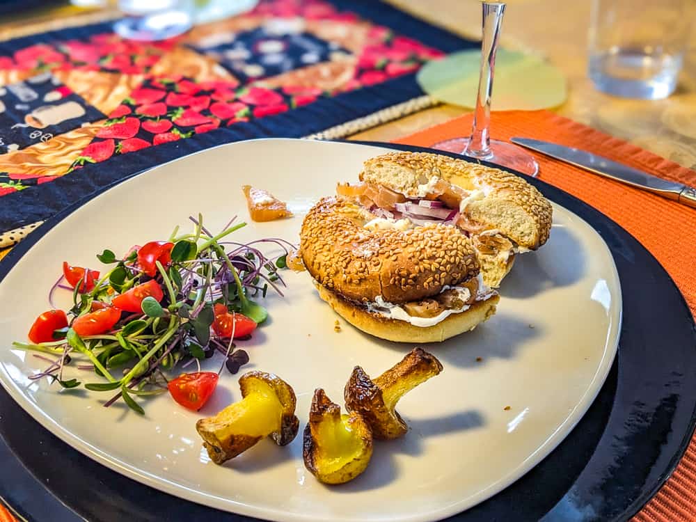 I tried the smoked salmon bagel and the Mec Muffin, a twist on the classic breakfast sandwich. The whole thing was absolutely delicious.