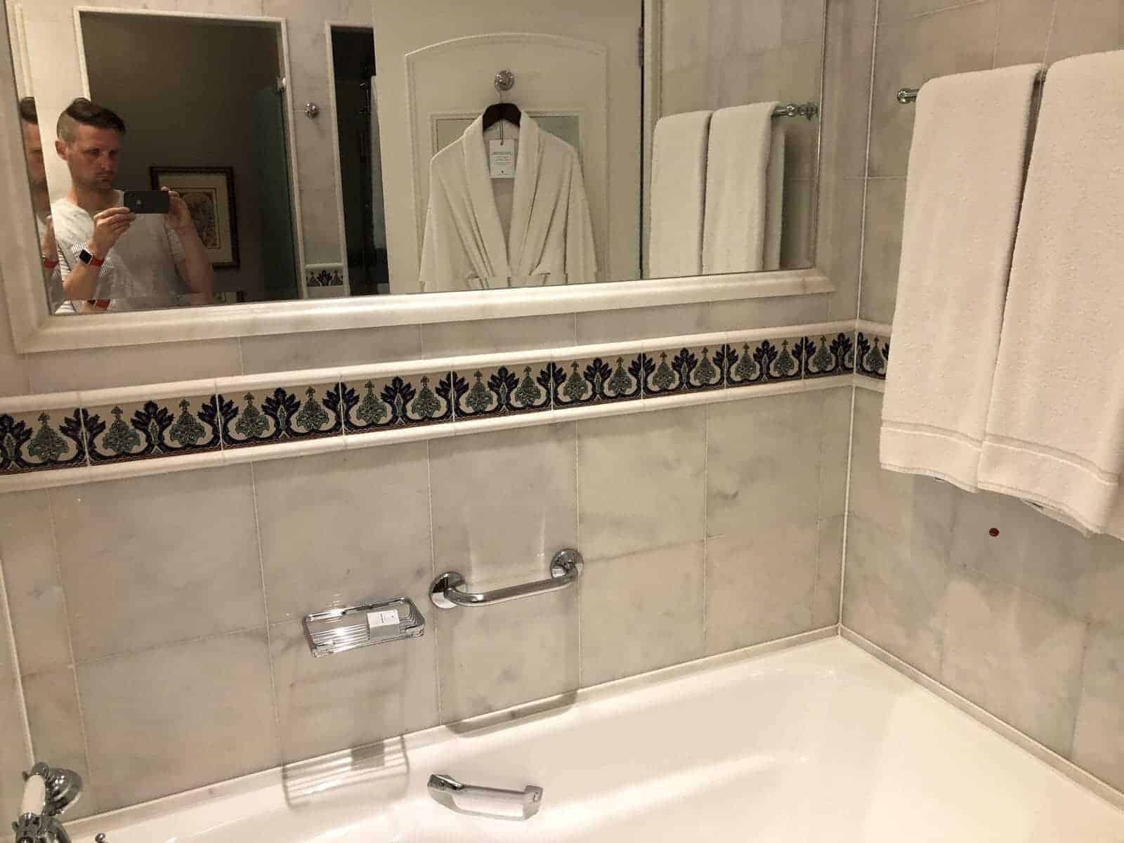 Finally, the bathroom is the most luxurious aspect of the room with not only a sink, a bath, but also a shower and toilet, all separate.