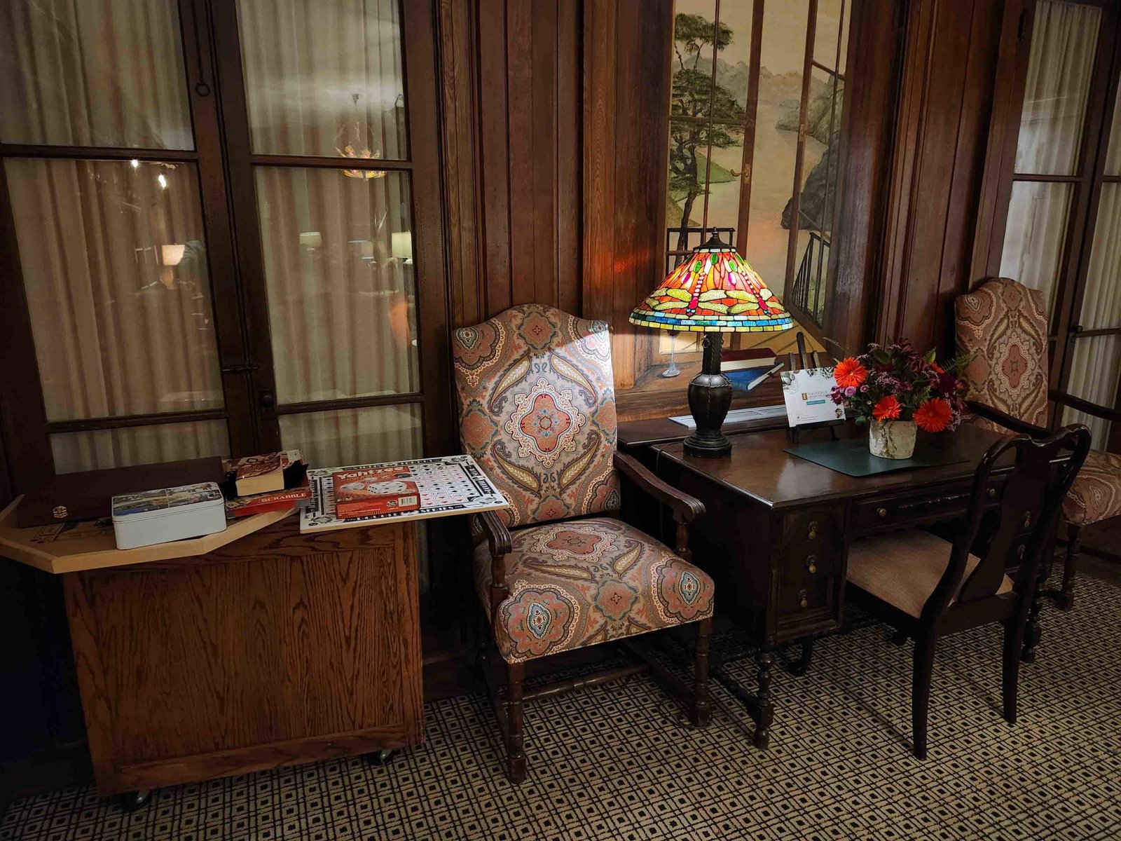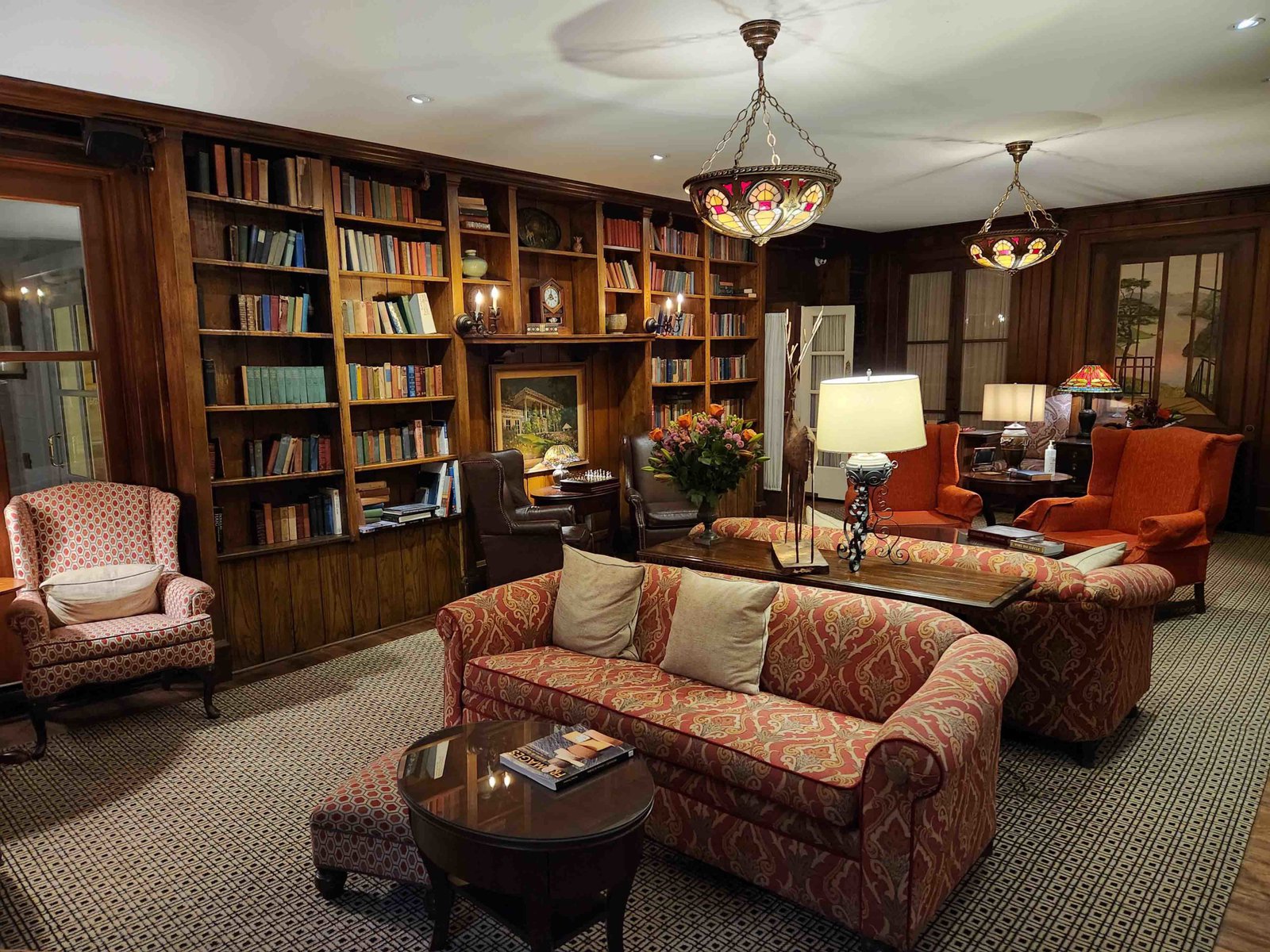 The reception area is located right after you walk in the front door. Within this building is also a library, the main restaurant, and some of the standard rooms on the upper floor. The feeling of old-world luxury hits you as soon as you walk in the door with the smell of old, rich mahogany wood in the air.
