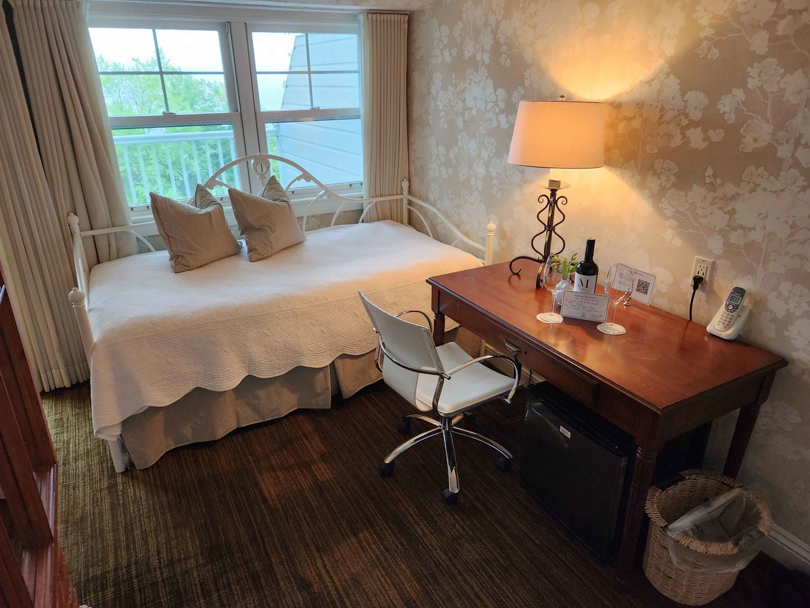Our premium room just oozed charm and it was perfect for a one-night romantic getaway. It featured a queen-sized bed, chaise lounge, day bed, sitting area, a patio overlooking the water, a mini-fridge, and a coffee/bar table. Inside were three welcome amenities waiting for us comprising of a bottle of wine and two sweets.