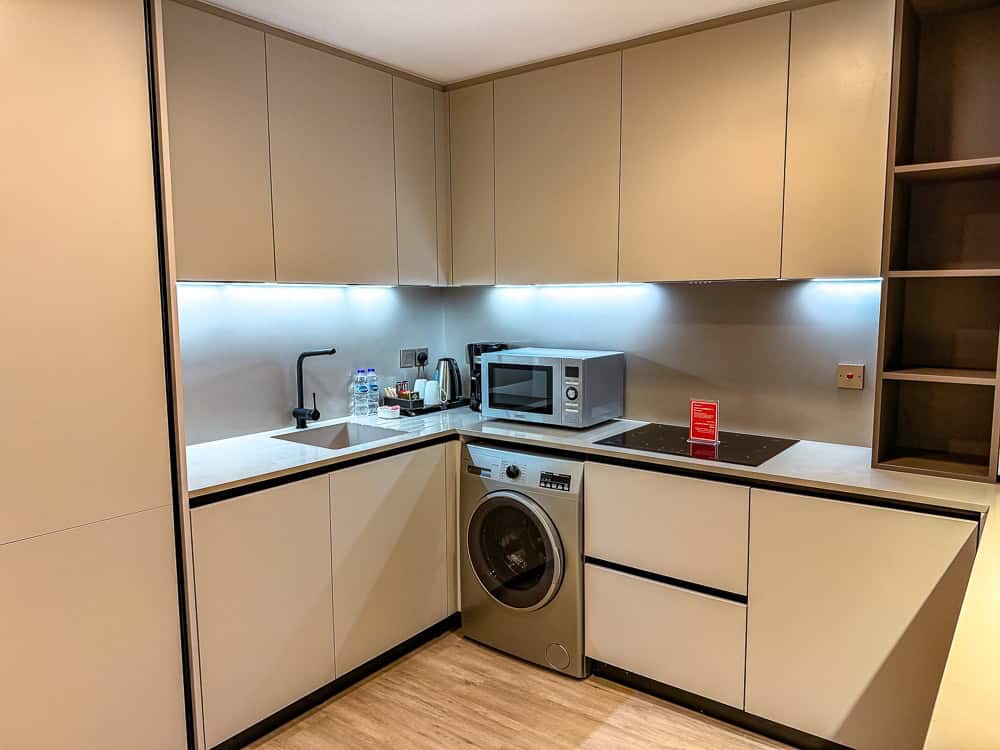During my 3 nights, I stayed in a suite with a bedroom. Specializing in long-term stays, all Residence Inn rooms feature a kitchenette. The kitchen is outfitted with all the appliances necessary to prepare complete meals, such as a fridge, oven, hot plates, microwave, and dishwasher.