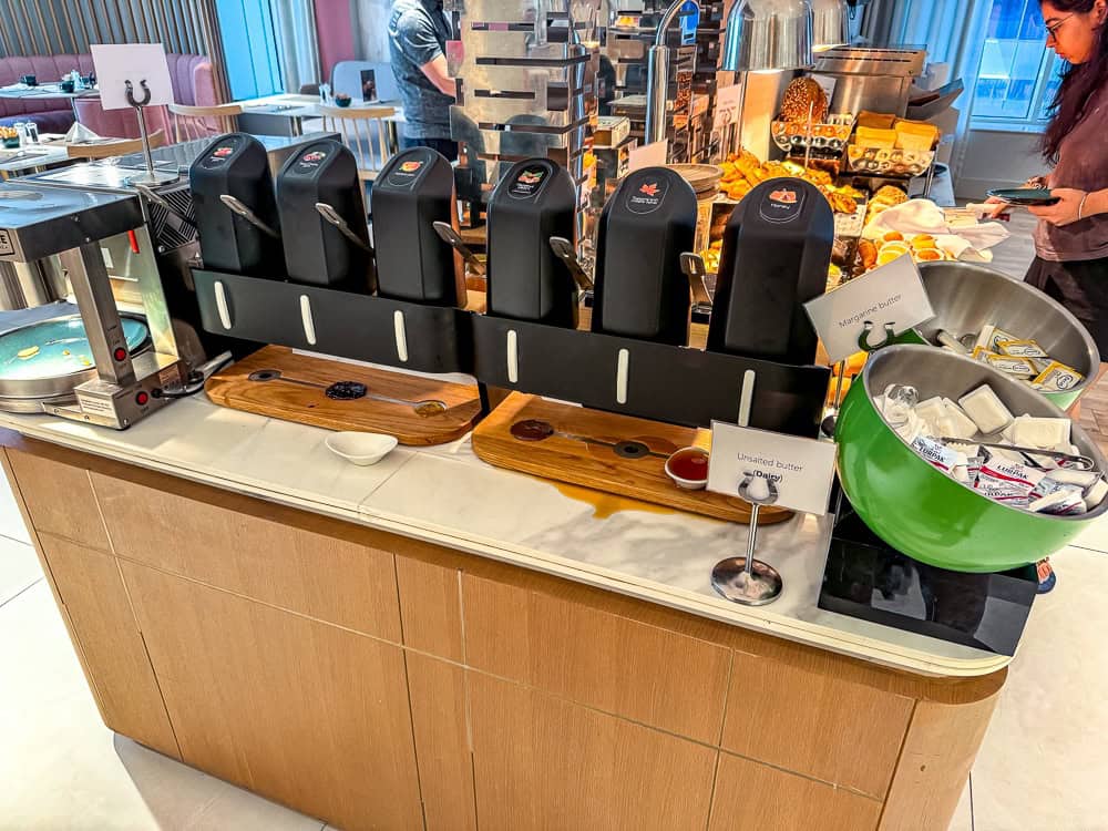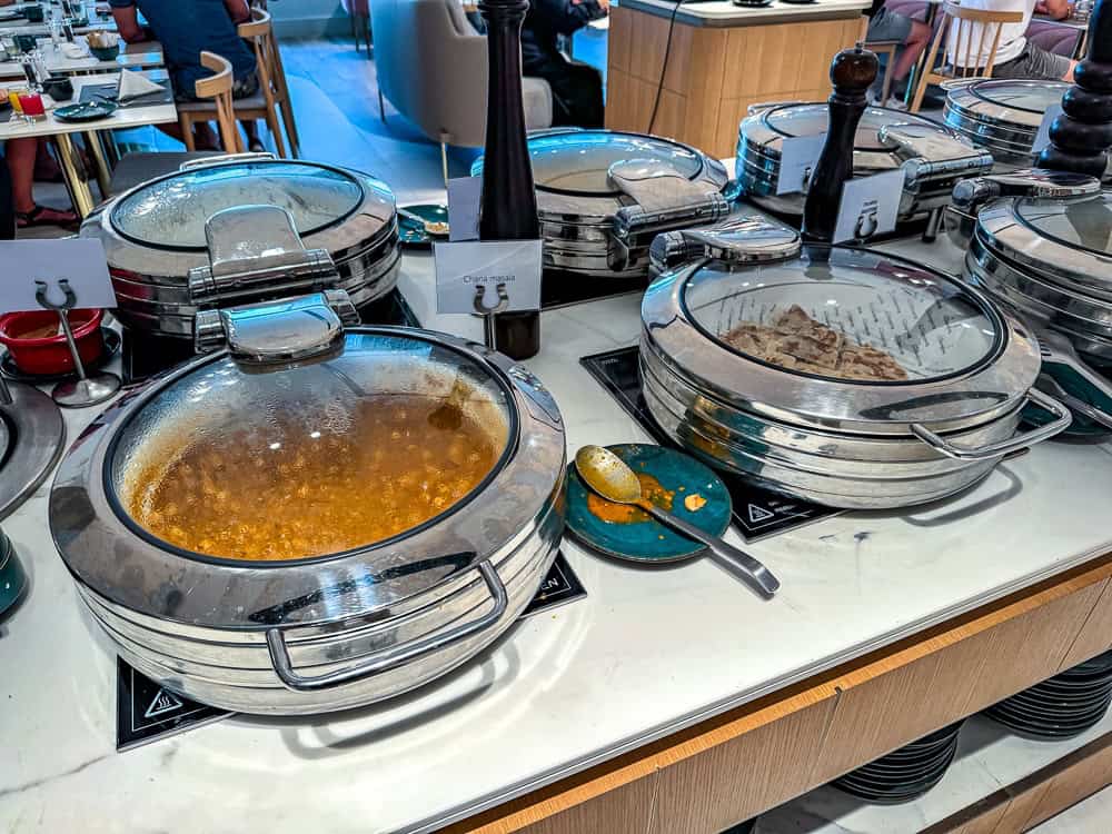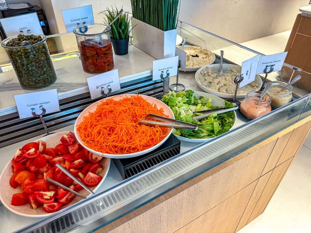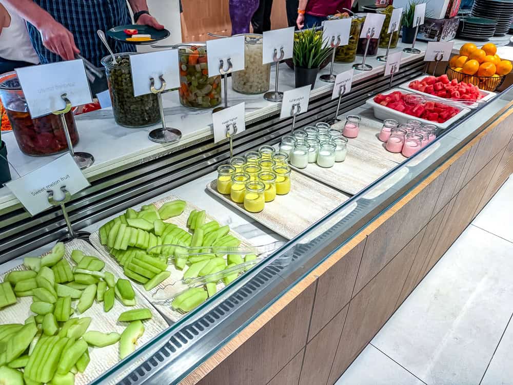 The buffet offers several stations: pastries, fruit, raw vegetables, salads, fruit juices and omelettes. Everything is well presented and the team ensures that the buffet is always full.
