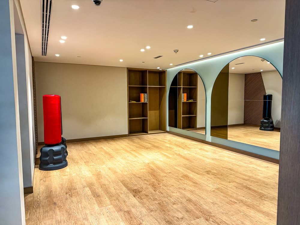 In addition to the equipment, the training room also features an area dedicated to yoga and stretching. It’s the perfect place to unwind after your workout or relax before starting your day.
