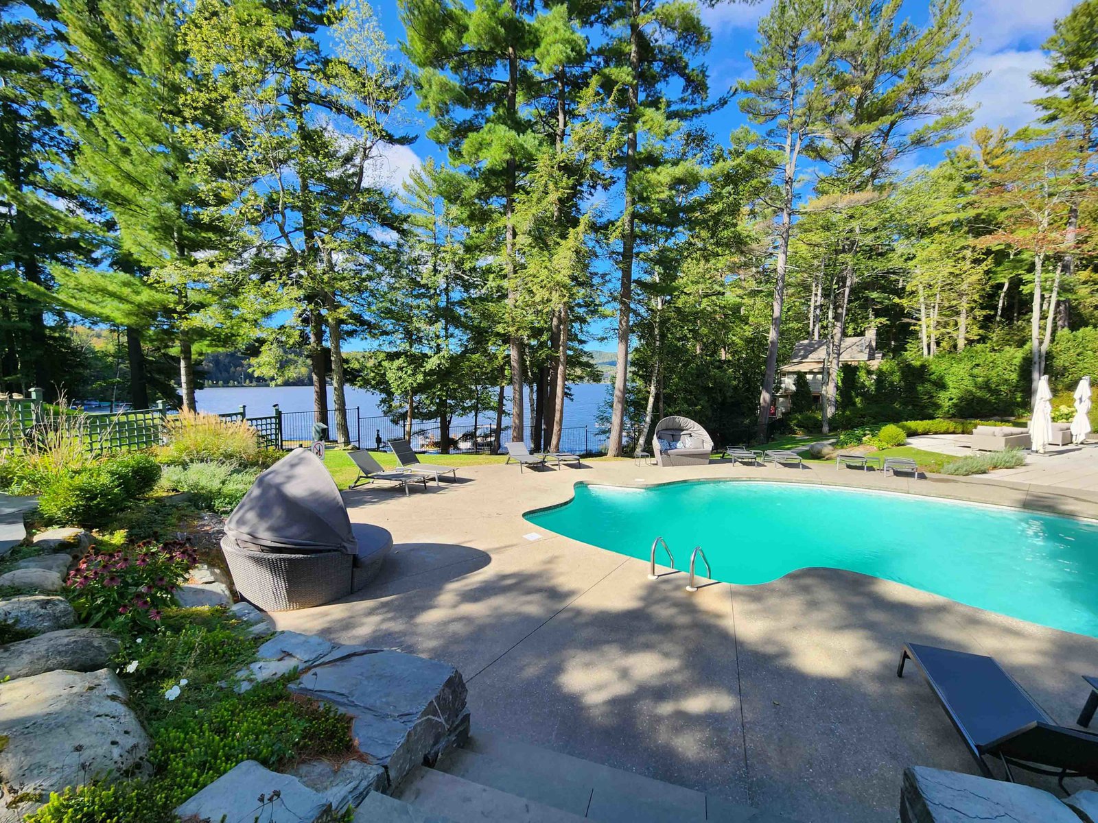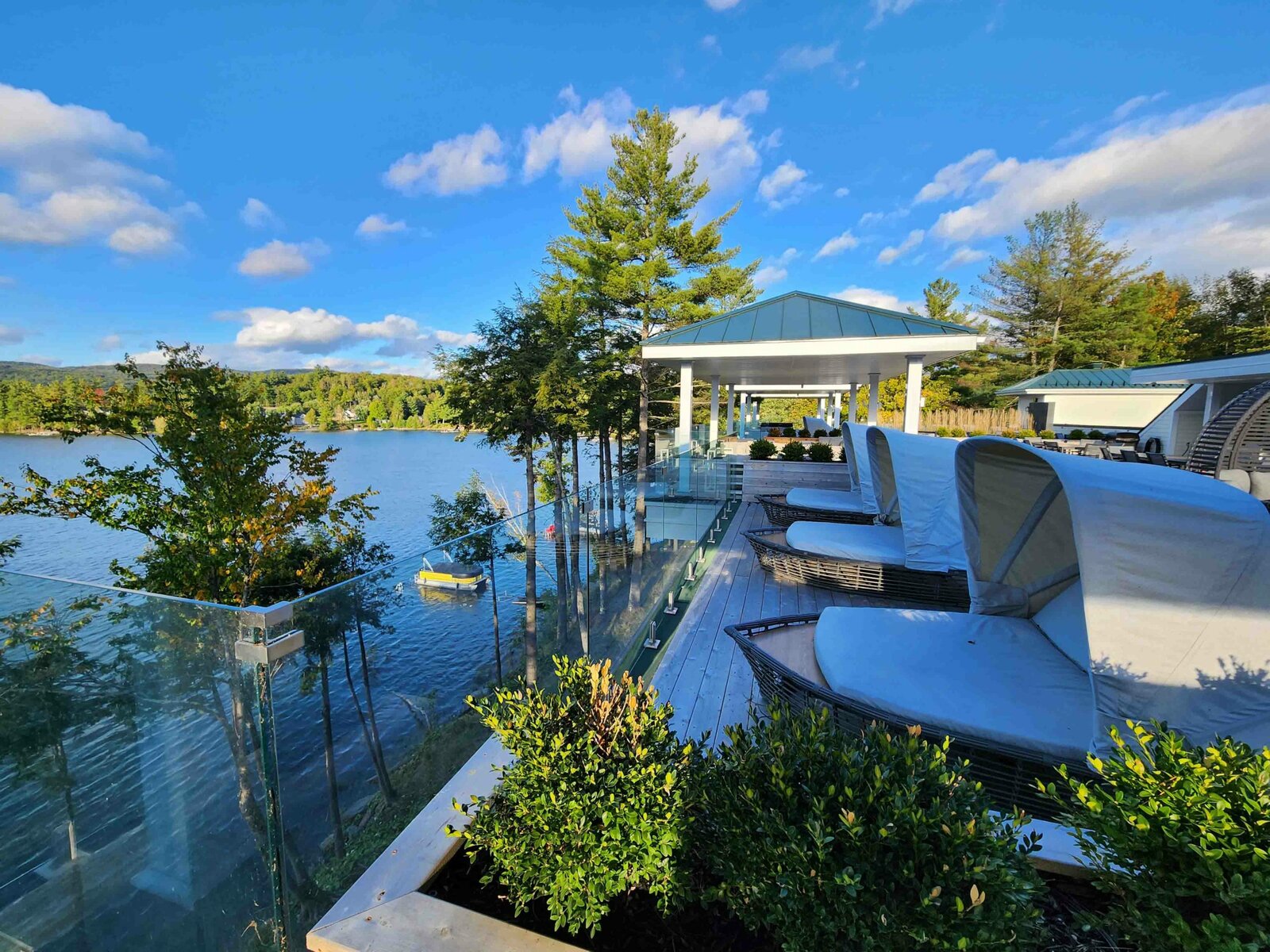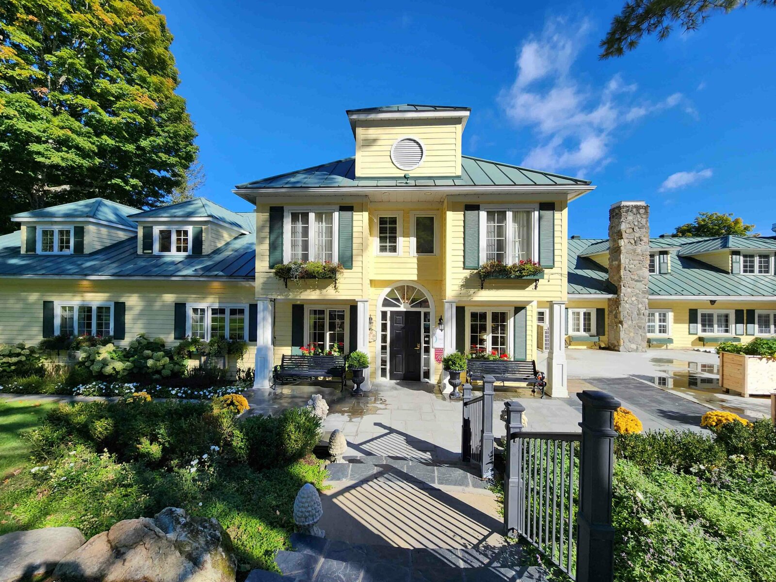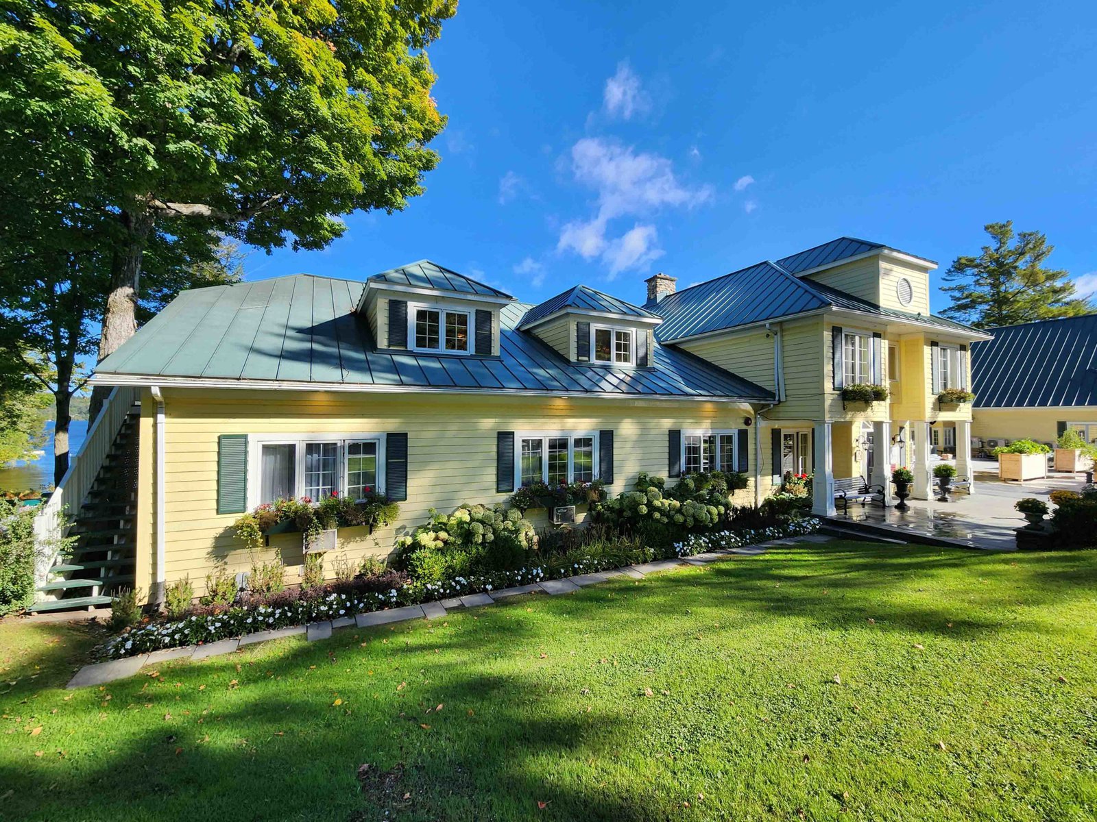 The hotel is located on the beautiful shores of Lake Massawippi in the town of Ayer’s Cliff. The location is opposite Quebec’s other 5-star property in this area, the Manoir Hovey.