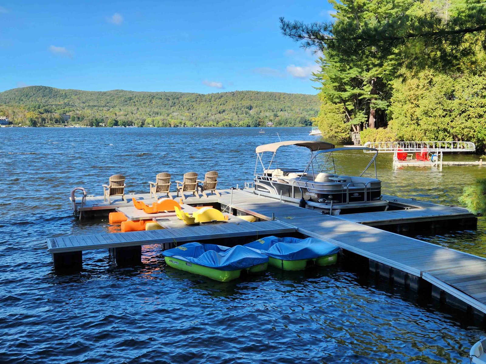 There was a pontoon boat available to rent for an extra charge of $135/hour + tax. We took this out our last day and had some nice views of the lake. It was actually quite fun – I was expecting it to be quite slow but was pleasantly surprised at its speed and made it almost to the other end of Lake Massawippi in half an hour before I had to turn back.