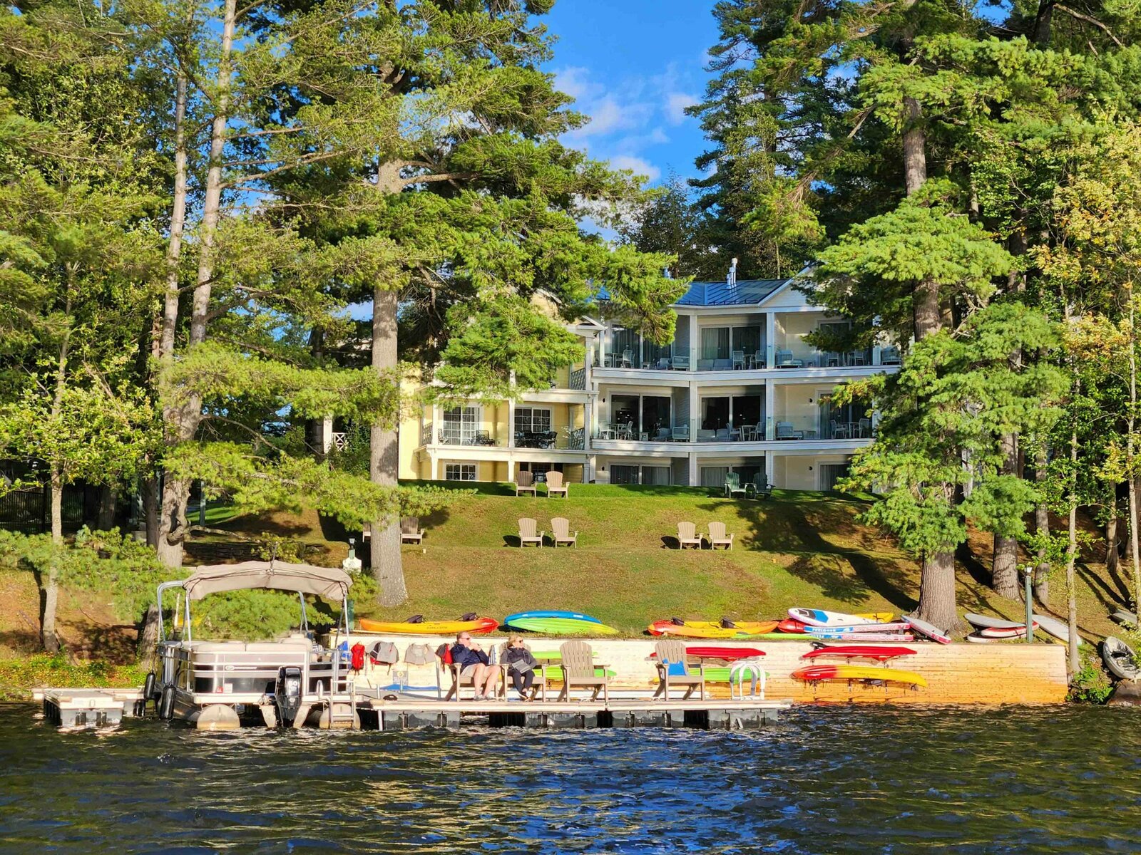 The property is gorgeous with patios along the waterfront, hammocks, comfortable sitting areas, and a jetty where you can come and go via the water.