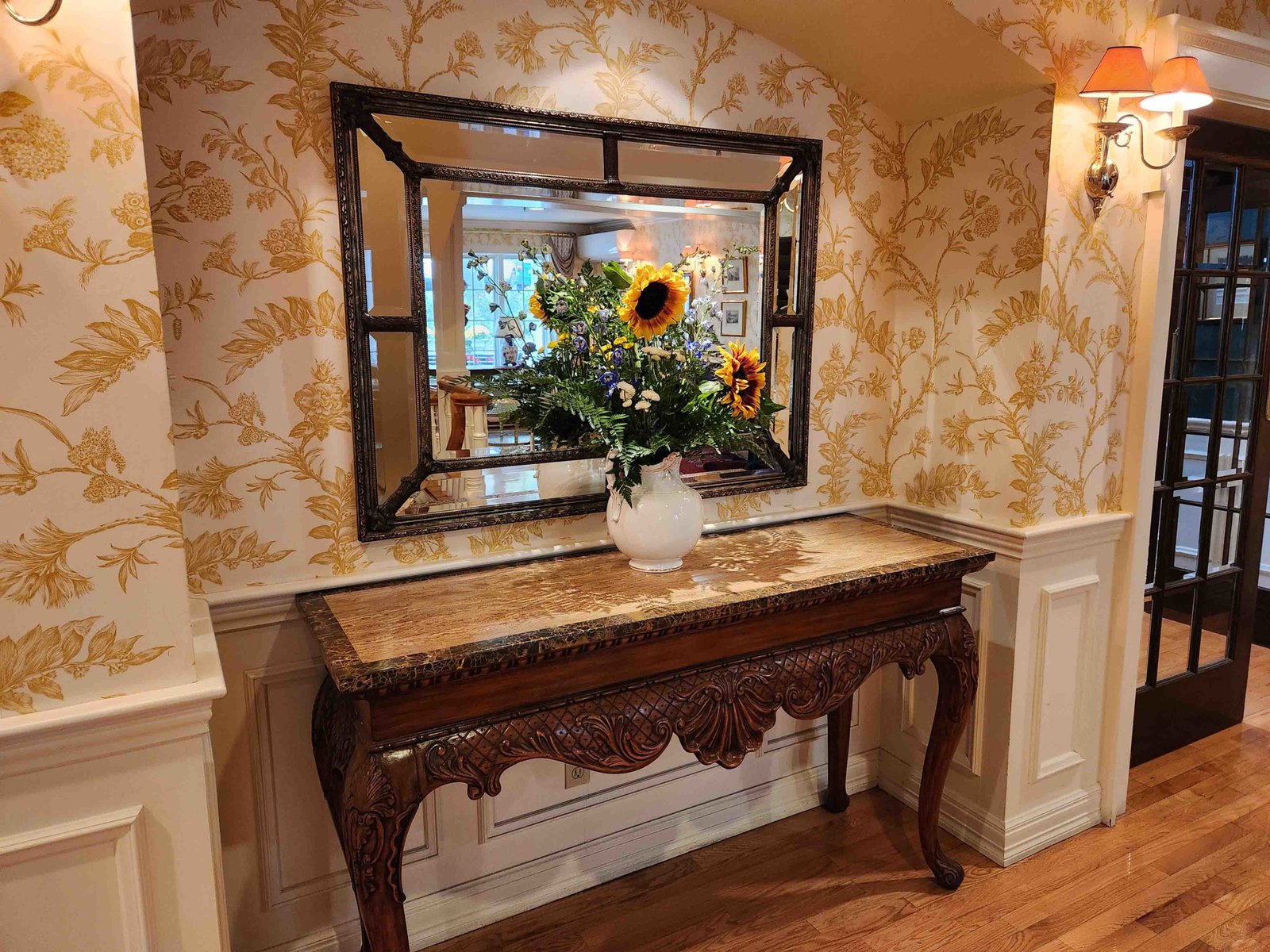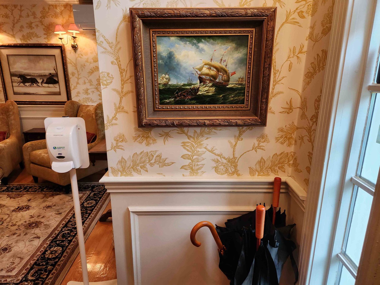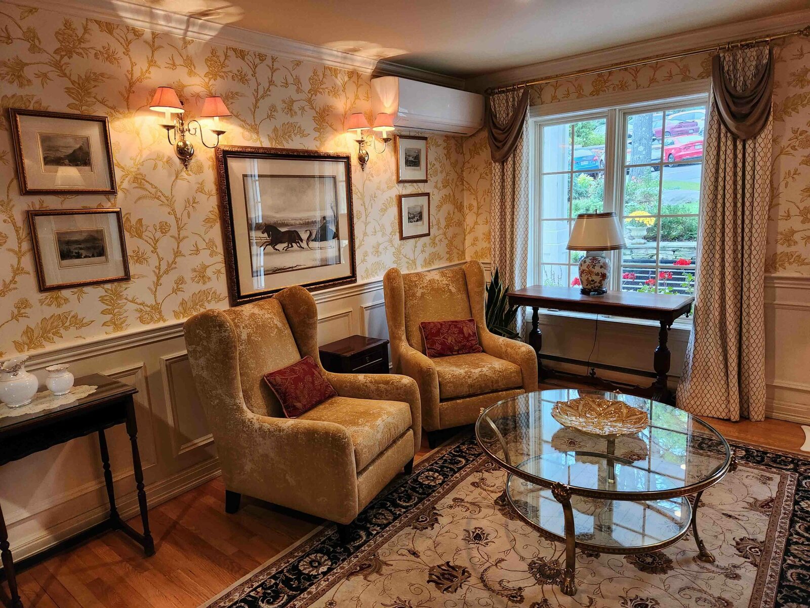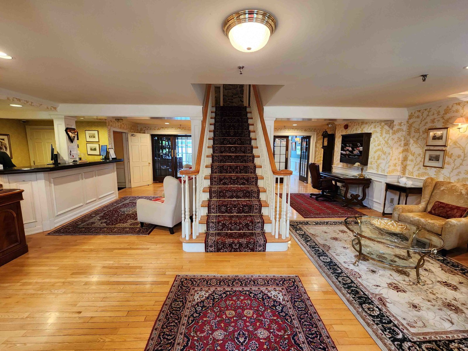 The reception area is through the front entrance of the main building. This structure also houses the restaurant, a beautiful sitting room, and some of the regular rooms on the upper floor.