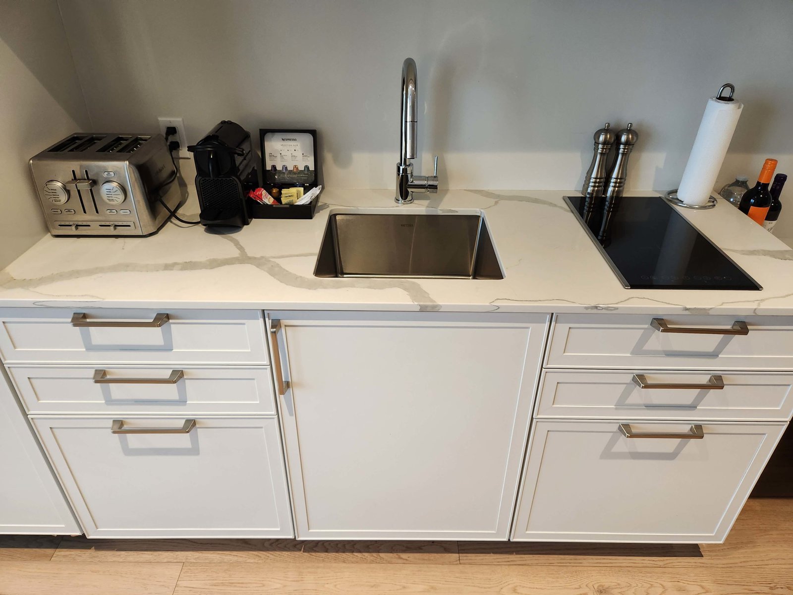 Our Prestige Suite featured a king bed, a queen bed, a pullout sofa, a full kitchen, minibar items (for a fee), and balcony overlooking the water.
