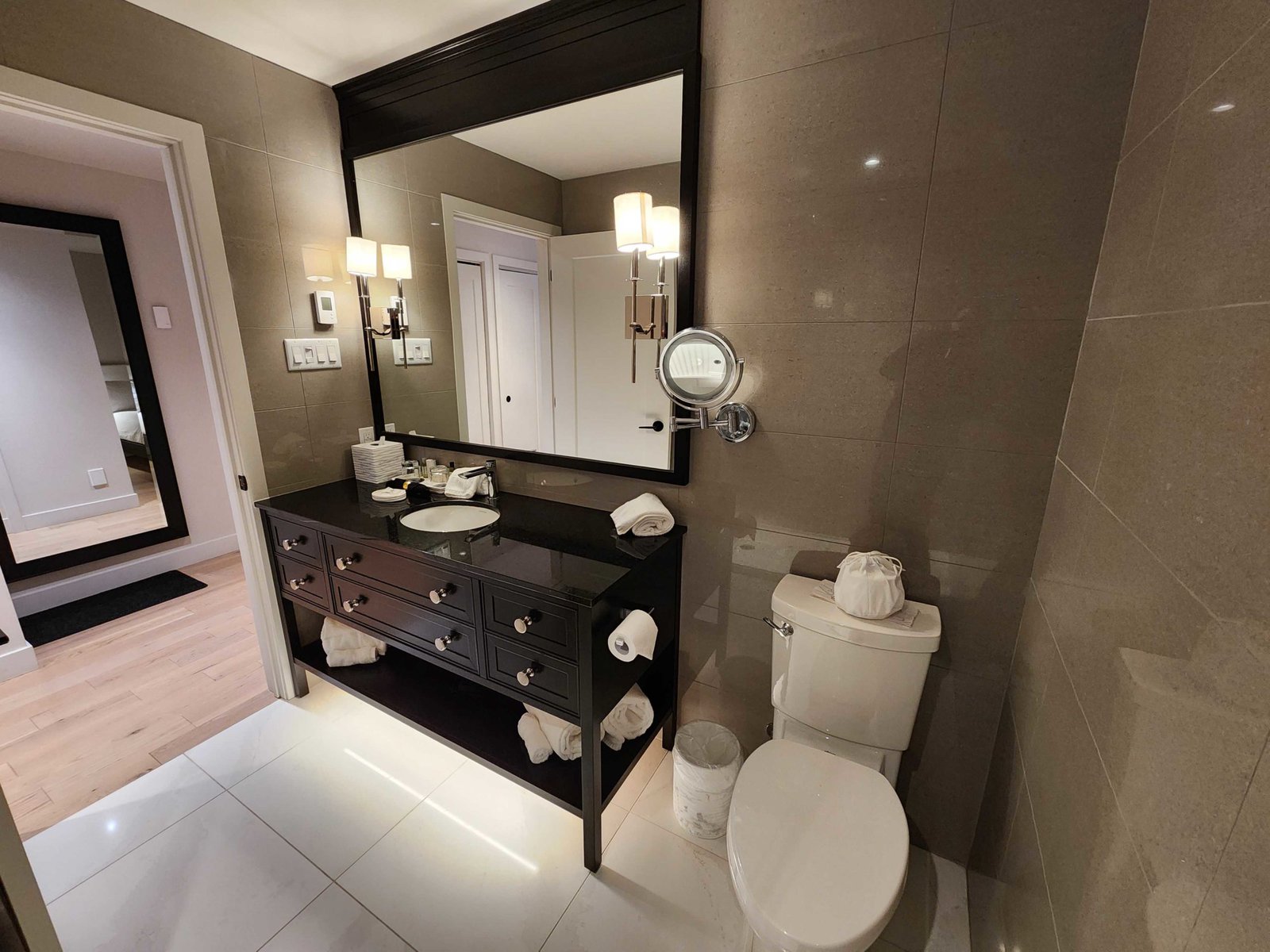 Overall the room was very nice. It was large, functional, the kitchen was great, with sweeping views of the lake. Other than the view, there wasn’t anything particularly charming about it. A bit austere, but very clean, comfortable, and modern. Again, sort of like the very best Residence Inn you’ve ever been to.