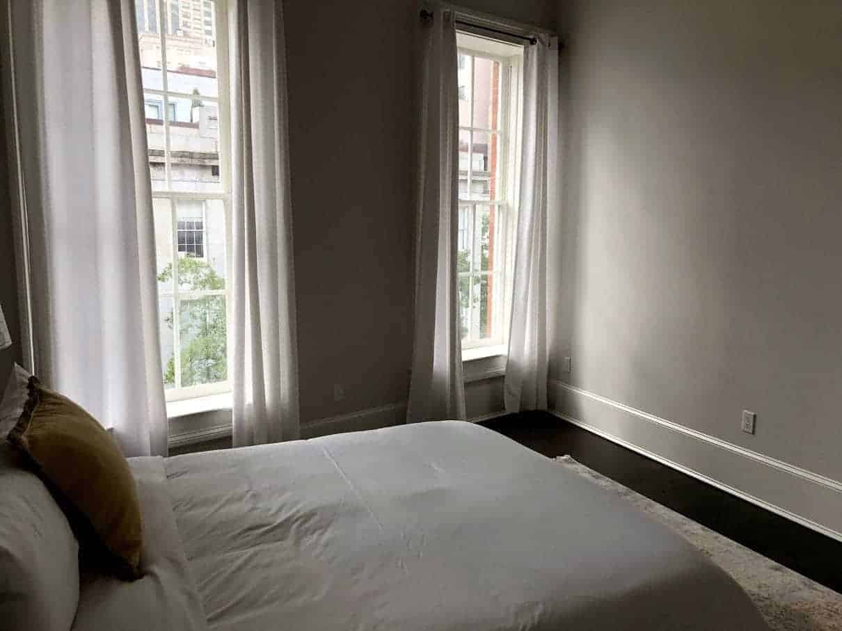 The bedding is very comfortable! On the other hand, if you like to sleep in the dark, go on your way. In this month of July, you’ll wake up at dawn with these white curtains.