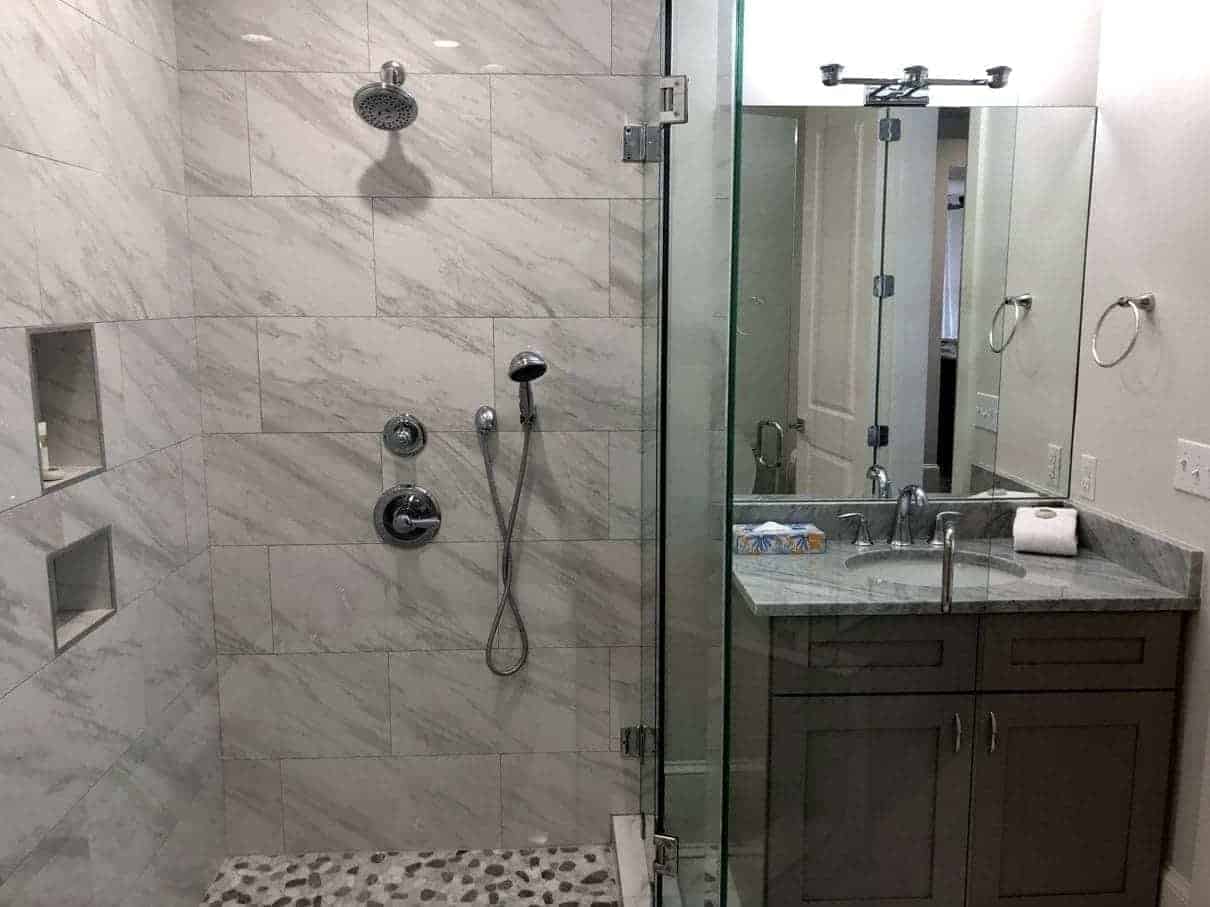 An adjoining bathroom with shower + bathtub + toilet, again rather exceptional in our eyes for an apartment on short term rental!