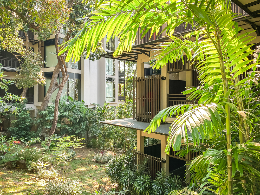 A large balcony with a beautiful view of the forest and the sea. Don’t be surprised to see a monkey on your balcony, they are everywhere in the forest.